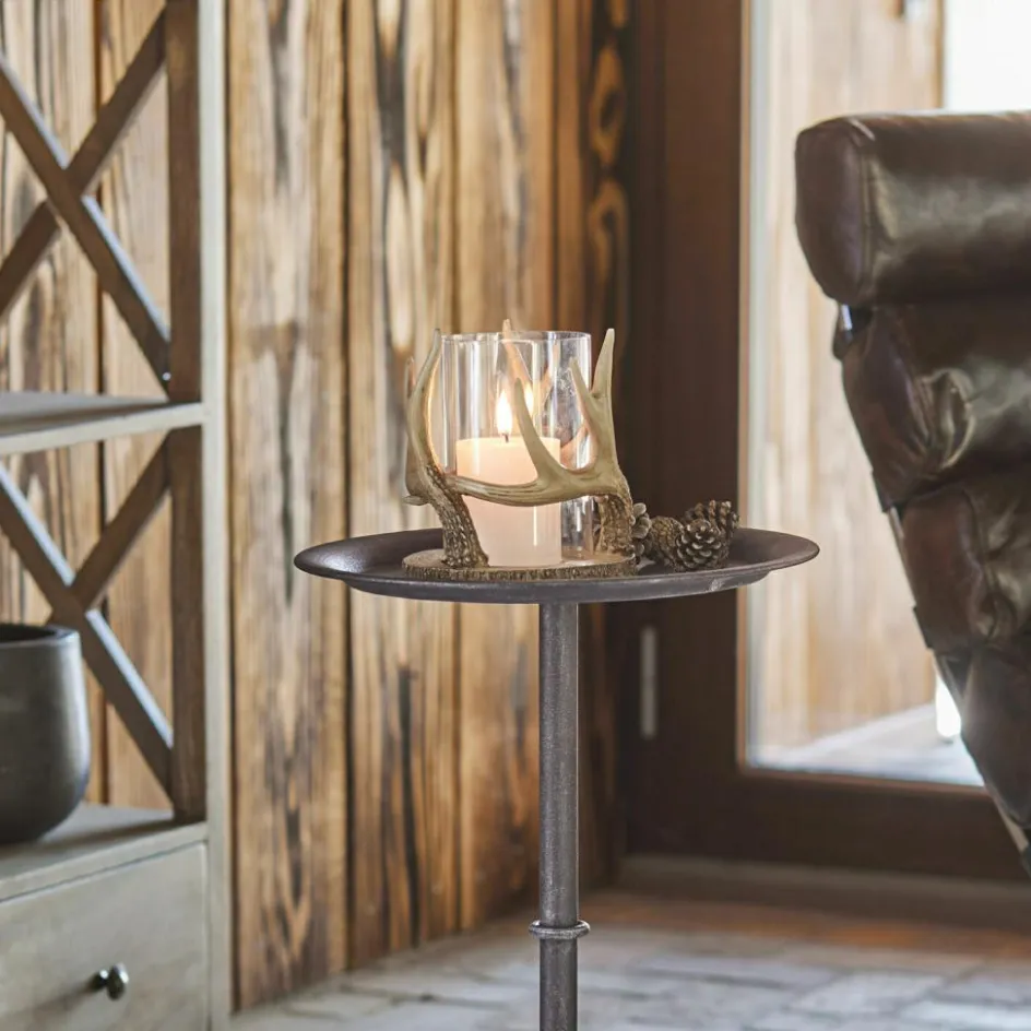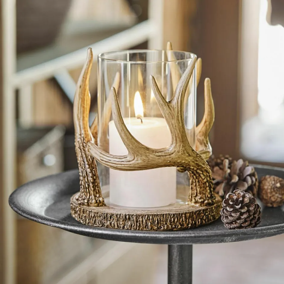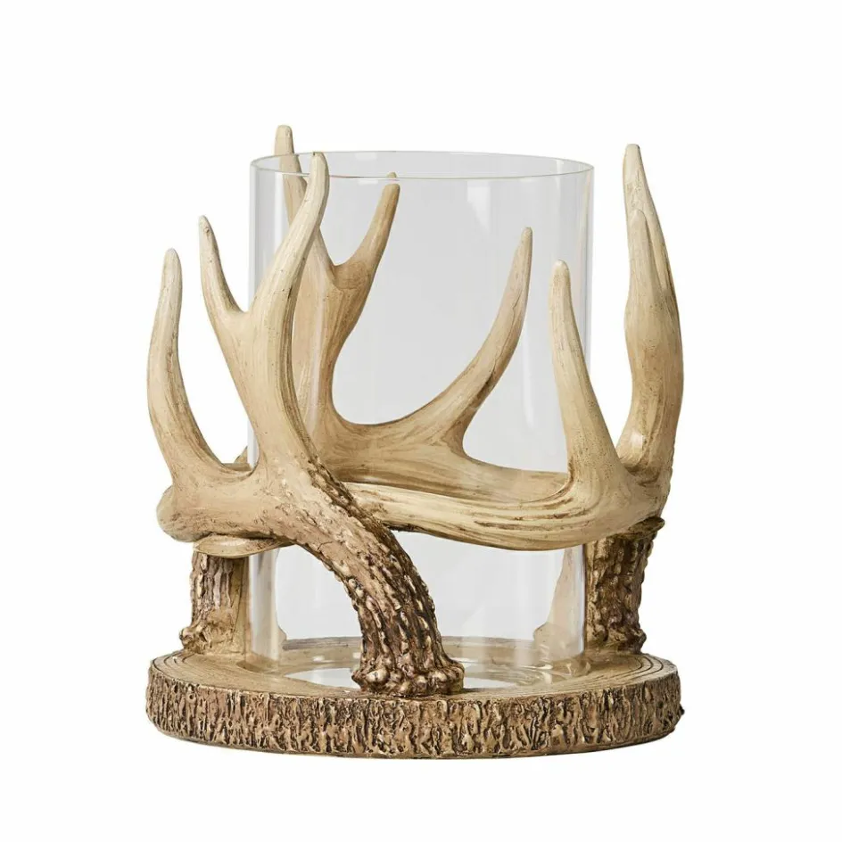 Verschönern Sie Ihr Zuhause mit diesem exquisiten Windlicht, das Natur und Handwerkskunst perfekt vereint. Die Basis und die Geweihverzierungen sind aus hochwertigem Polyresin gefertigt und detailreich handbemalt, um die Textur und Farbgebung echten Geweihen nachzuempfinden. Der klare Glaseinsatz setzt einen modernen Akzent und lässt sich leicht entfernen, was das Platzieren und Anzünden von Kerzen erleichtert. Ob auf dem Esstisch für ein romantisches Abendessen oder als stimmungsvolle Beleuchtung auf einer Anrichte, dieses Windlicht strahlt eine warme und einladende Atmosphäre aus, die besonders gut zum Landhausstil passt.