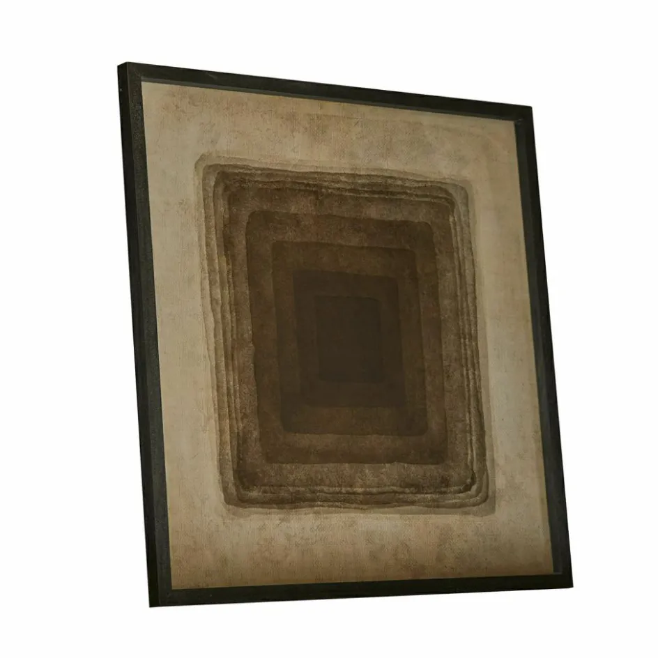 Dieses Bild in einem stilvollen Rahmen aus hochwertigem Mangoholz ist mehr als nur eine Dekoration – es ist ein Statement moderner Kunst. Das klare geometrische Design erzeugt durch seine geschichteten Quadrate eine hypnotische Tiefe und zieht den Betrachter in seinen Bann. Die gedeckten Farben, die von einem sanften Braun bis zu tiefen Grautönen reichen, vermitteln ein Gefühl der Ruhe und schaffen eine einladende Atmosphäre. Der Rahmen aus Mangoholz umschließt das Bild perfekt, während seine schlichte Eleganz das Kunstwerk in den Vordergrund rückt. Besonders praktisch: Der Rahmen erlaubt es, das Bild je nach Jahreszeit oder Geschmack auszutauschen, sodass Sie Ihr Interieur immer wieder neu gestalten können.
