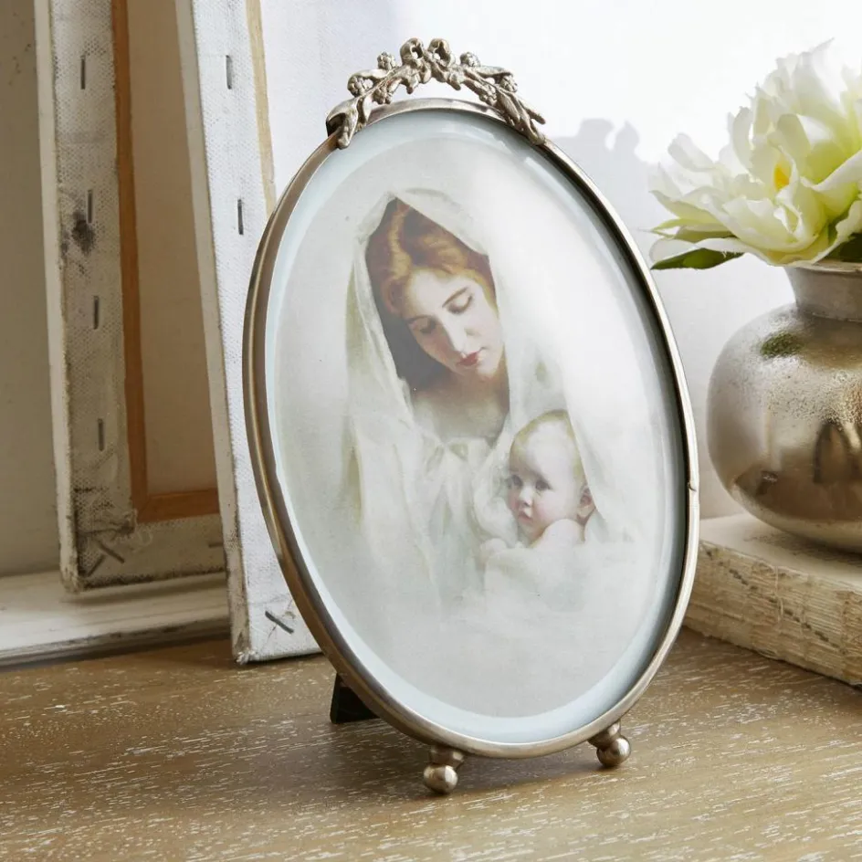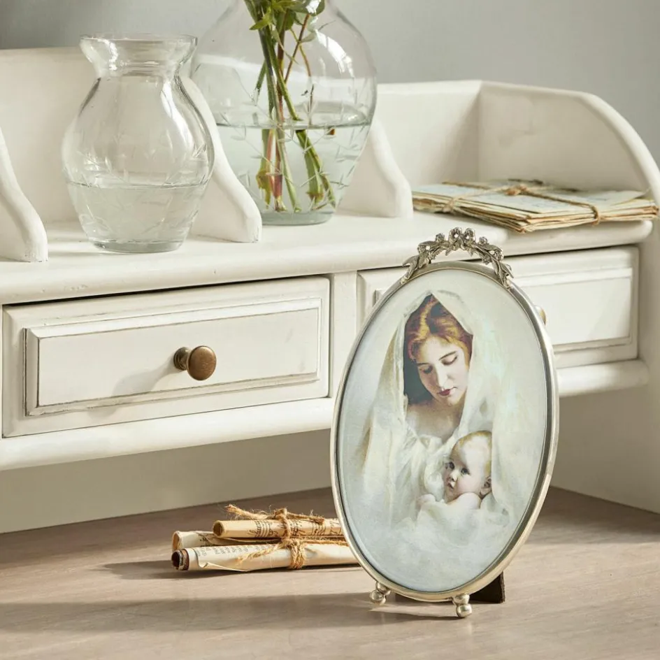 Ein echtes Lieblingsstück für alle Freunde des Romantischen und Nostalgischen. Der wunderschöne Bilderrahmen aus Messing und Glas ist mit einem floralen Detail und kleinen Füßchen geschmückt. Die Rückseite ist mit weichem Samt bezogen. Dort befindet sich auch ein Schieber zum Öffnen. In dem kleinen Schmuckstück finden Ihre liebsten Bilder und Kunstwerke ein wundervolles Plätzchen – ob Hochzeitsfotos, Fotos der Familie, Gemaltes der Kinder oder gepresste Blüten und antike Zeichnungen, so entsteht ein ganz persönliches Detail mit viel Liebe. Der zarte Rahmen macht sich vorzüglich im Regal oder auf dem Nachttisch aufgestellt. Auch in Kombination mit weiteren Bilderrahmen sieht er attraktiv aus. Am besten versteht er sich mit einem Ambiente im Shabby-Chic, in dem Stücke mit Geschichte und Patina zusammenwirken.