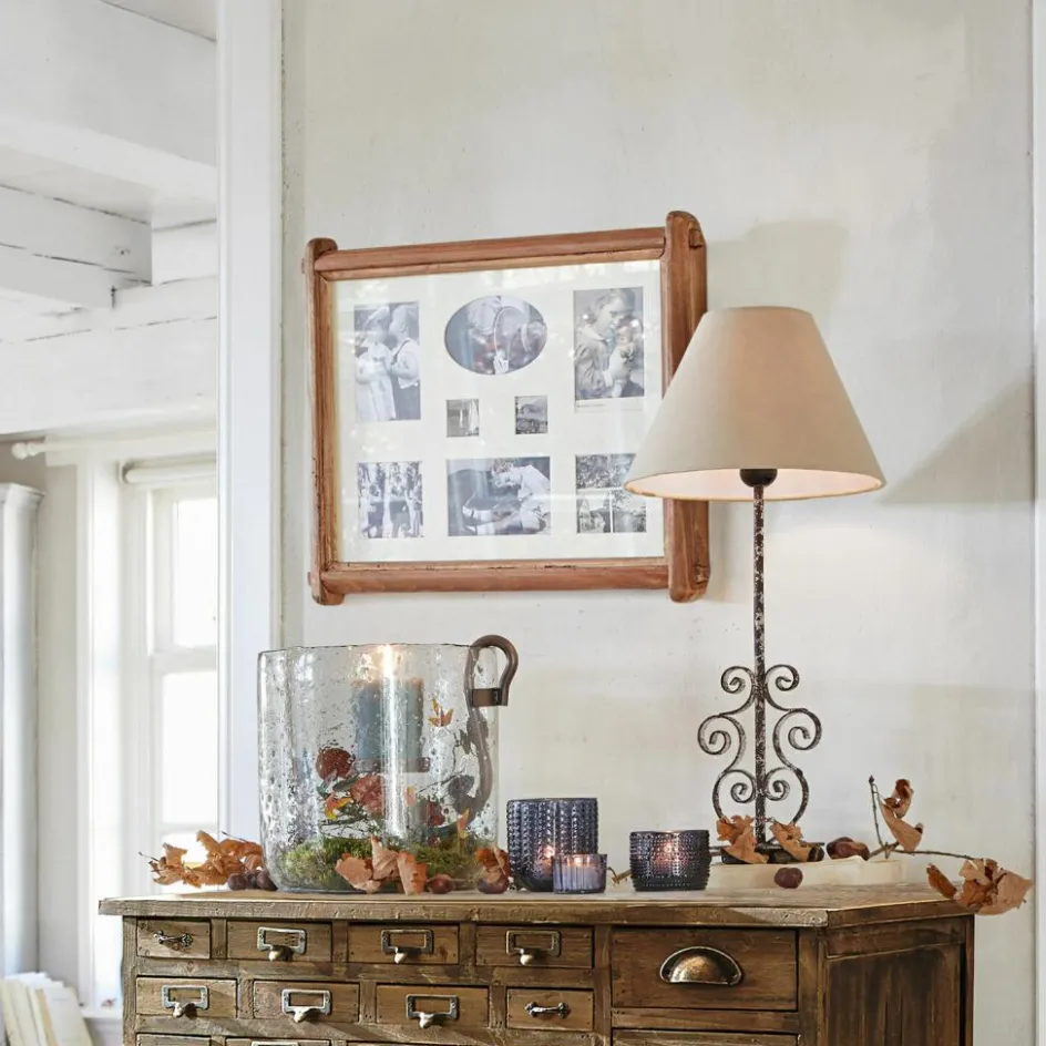 Massives Tannenholz bringt diesen dekorativen Bilderrahmen zu neuen Ehren. Gerade die unvollendete Schönheit mit ihren diversen Abnutzungsspuren macht das Accessoire im Shabby-Stil so besonders. Dabei werden die gekonnte Verarbeitung und der nützliche Aspekt nicht außer Acht gelassen. Das in verschiedenen Formen und Größen ausgestanzte Passepartout aus robustem Kartonpapier bietet acht Fotos ein individuelles Wirkungsfeld. Eine Frontplatte aus Klarglas schützt Ihre wertvollen Bilder vor Schmutz und Staub, die Rückseite ist mit einer strapazierfähigen Holzfaserplatte ausgestattet. Durch zwei rückseitige Haken lässt sich das Schmuckstück stabil an Ihre auserwählte Wand anbringen. Stilvoller können Sie Ihre Lieblinge nicht in Szene setzen.