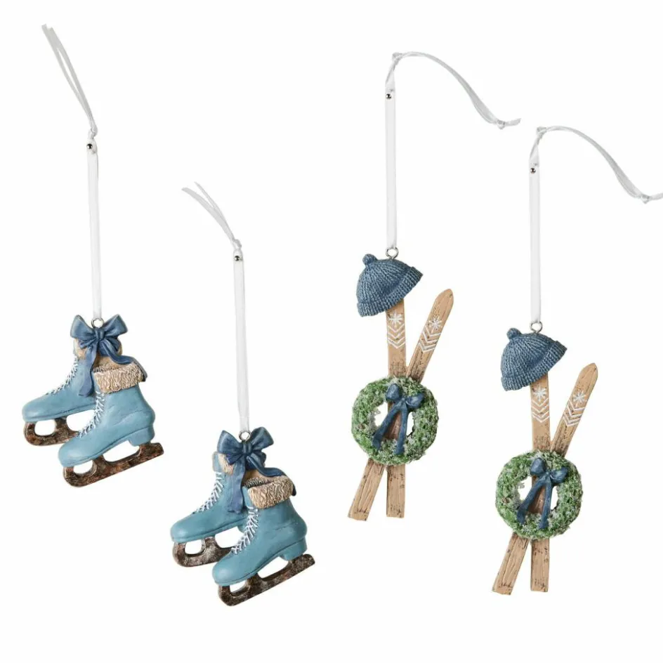 Unglaublich detailverliebt und sehr, sehr stimmungsvoll – diese wunderhübschen Anhänger lassen das Herz aller nostalgischen Weihnachts-Liebhaber höher schlagen. Die kleinen, verzierten Skier im Holz-Look und die süßen Eislaufschuhe aus Polyresin sehen ganz echt aus. Sie sind aufwendig von Hand bemalt und bis ins letzte Detail ausgestaltet. Sogar eine Optik wie von Schneeflocken wurde erschaffen. Im Set erhalten Sie zwei Designs. Das Quartett bezaubert mit fröhlichem Vintage-Charme. Ein dekoratives Band ist schon angebracht, sodass Sie gleich damit beginnen können, das perfekte Plätzchen für die kleinen Kunstwerke zu finden – vielleicht am Weihnachtsbaum, einer Girlande oder Zweigen? Bei diesem Anblick denken wir gerne an fröhliche Kindertage auf dem vereisten See oder an den Skiurlaub mit der Familie zurück. Holen Sie sich dieses schöne und heimelige Gefühl nach Hause und feiern Sie ein Fest wie früher – dieser stilvolle Schmuck ist dafür die beste Begleitung.