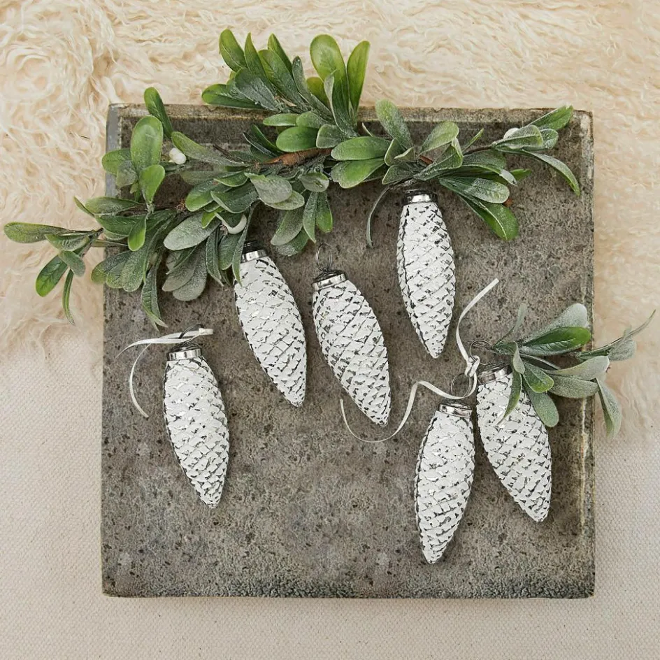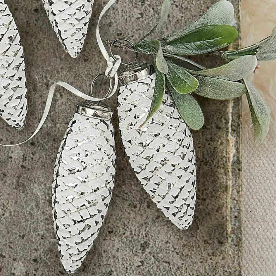 Die festliche Jahreszeit verdient Dekorationen, die genauso besonders sind wie die Momente, die sie schmücken. Dieses 6er Set Anhänger in Form von Tannenzapfen aus mundgeblasenem Glas bringt genau diese besondere Note in Ihr Zuhause. Jedes Stück wird von erfahrenen Glasbläsern handgefertigt und sorgfältig mit einem Antiksilber-Finish veredelt, das den Anhängern einen Hauch von Vintage-Eleganz verleiht. Das schimmernde Silber reflektiert das Kerzenlicht auf zauberhafte Weise und schafft eine warme, einladende Atmosphäre. Obwohl die Anhänger ohne Aufhängebändchen geliefert werden, lassen sie sich vielseitig einsetzen – ob am Weihnachtsbaum, als Tischdekoration oder an Türkränzen. Ihre zeitlose Schönheit macht sie zu einem unverzichtbaren Bestandteil jeder festlichen Dekoration.