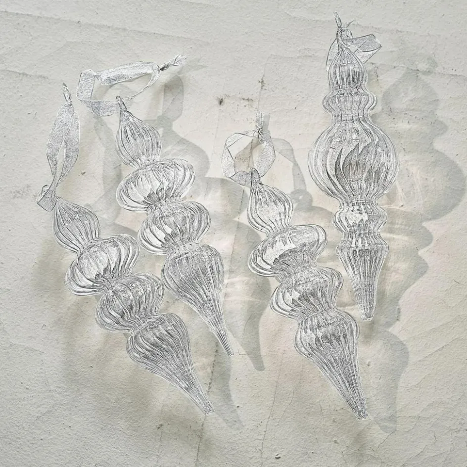 Der zauberhafte Weihnachtsschmuck im 4er Set bringt eine besondere Magie in Ihr Zuhause. Aus mundgeblasenem Glas gefertigt, begeistert jedes Ornament durch seine einzigartige Form und die sanfte, transparente Struktur. Das liebevoll gestaltete Design mit den filigranen Details spiegelt das kunstvolle Handwerk wider und setzt glamouröse Akzente an Ihrem Weihnachtsbaum. Die zarten Aufhängebänder ermöglichen eine mühelose und elegante Platzierung, sodass Ihr Baum in vollem Glanz erstrahlen kann. Diese edlen Glasornamente sind nicht nur dekorative Highlights, sondern auch ein Zeichen für Tradition und Qualität, die Ihre Festtage noch unvergesslicher machen.