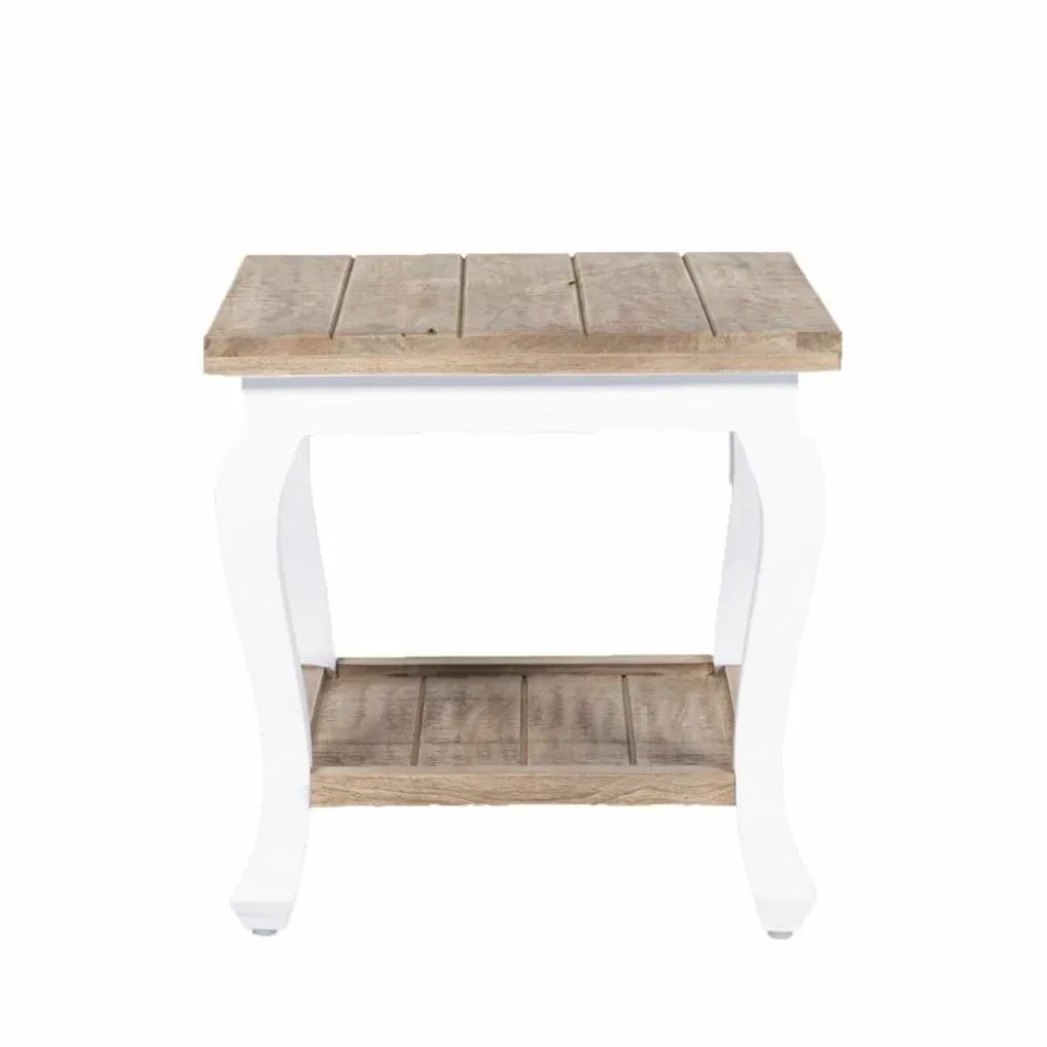 Klein, aber oho. Diese Aussage trifft auf diesen Tisch im charmanten Landhaus-Stil zu. Denn das hochwertige Möbelstück aus Mangoholz besticht eindeutig mit seiner ausreichenden Stellfläche – dank der zusätzlichen Ablage unten. Diese bieten Platz für Zeitschriften oder ein Buch. Während der obere Part eher den stilvollen Accessoires oder dem Glas Wein vorbehalten ist. Einen charmanten optischen Gegensatz bilden die Naturholzplatte mit der sichtbaren Maserung und die geschwungenen Beine sowie die helle Tischzarge. Mit seinem äußeren Erscheinungsbild passt der Tisch zu einer Einrichtung im edel-maritimen Long-Island-Stil genauso gut wie ins klassische Landhaus-Ambiente. Die kleine, kompakte Größe kommt als Beistelltisch besonders gut neben einer schlichten Couch oder einem Sessel zur Geltung.