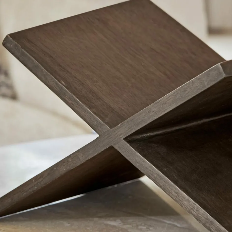 Mit seiner markanten X-Form und der tiefen, antikbraune Farbgebung wirkt dieser Buchständer wie ein kleines Designobjekt mit funktionalem Mehrwert. Gefertigt aus massivem Mangoholz, besticht er durch seine natürliche Maserung und eine angenehm matte Oberfläche, die Wärme und Charakter ausstrahlt. Er eignet sich perfekt zum stilvollen Präsentieren Ihrer Lieblingsbücher, ausgewählter Magazine oder auch kleiner gerollter Handtücher im Gästebad. Die gekreuzte Form sorgt nicht nur für einen sicheren Halt, sondern setzt auch ein stilistisches Statement. Ein vielseitiger Alltagsbegleiter, der sowohl auf dem Schreibtisch als auch im Wohnzimmer oder Flur eine gute Figur macht.