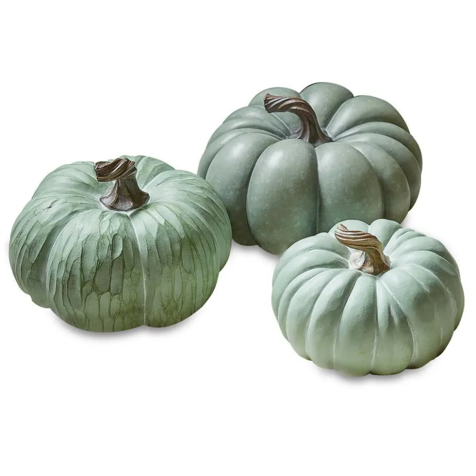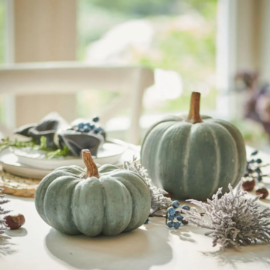 Wie frisch vom Kürbisfeld und einfach das perfekte Accessoire für alle Kürbis-Liebhaber – so wird es jetzt wunderbar herbstlich. Das charakteristische, runde Gemüse ist im Herbst nicht aus der Küche wegzudenken, und auch in Sachen Dekoration ist der Kürbis nun König. Diese drei hochwertigen, handbemalten Schmuckstücke sehen ganz echt aus, bleiben aber immer frisch und lassen sich jedes Jahr wieder nutzen. Sie sind harmonisch und zugleich abwechslungsreich in verschiedenen Größen und Nuancen gestaltet. Drinnen wie draußen erschaffen Sie damit reizende Arrangements – auf dem Tisch oder einer Kaminkonsole platziert, am Eingang, auf der Terrasse oder dem Balkon, der Kürbis ist an jedem Ort ein naturnahes Deko-Highlight. Zaubern Sie hiermit ländliches Flair in Ihr Heim und genießen Sie den Herbst und die Halloween-Zeit mit dem attraktiven und stilvollen Set ganz besonders.