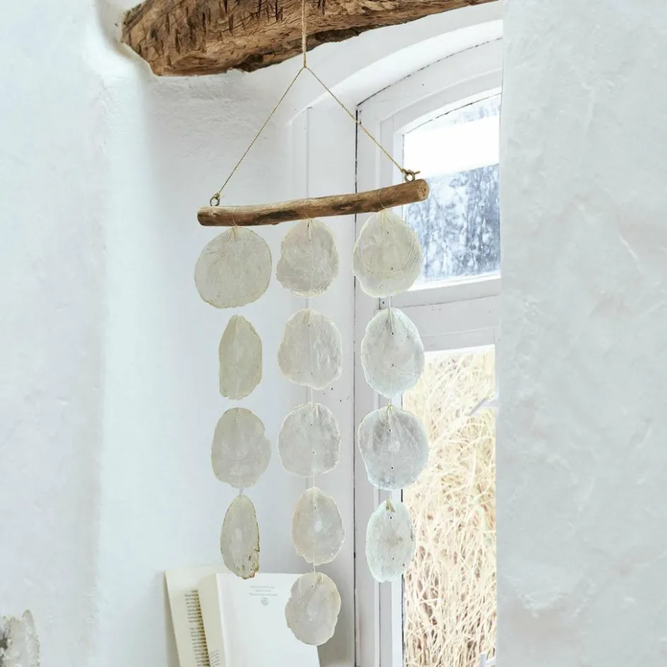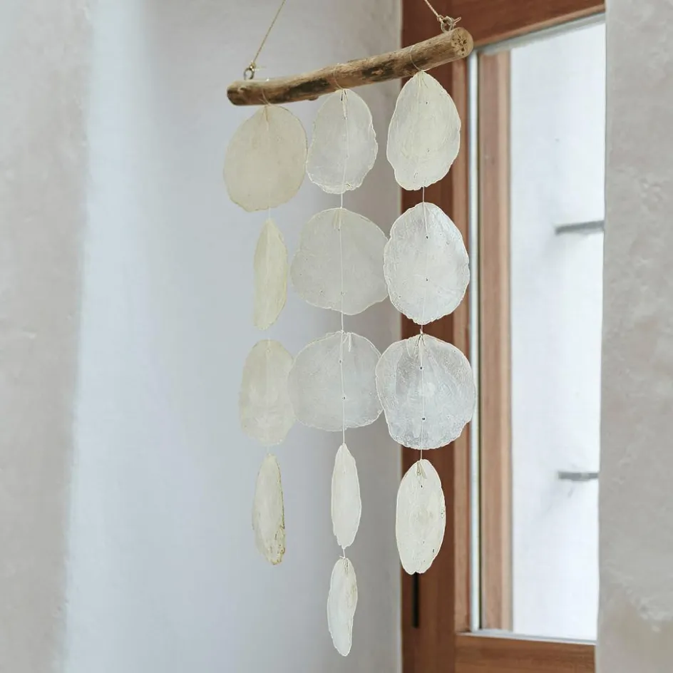 Ein wahres Highlight, welches Sie optisch und akustisch verwöhnt. Das filigrane Windspiel besteht aus wunderschönen, echten Capiz-Muscheln. Fährt ein Windstoß hindurch, erklingen zarte Klänge – Balsam für die Seele. So kommt viel positive Energie in Ihr Heim. Die Aufhängung ist aus Treibholz, sodass Sie hiermit Natur pur genießen. Durch das individuelle Treibholz und auch die echten Muscheln wird aus jedem Windspiel ein Unikat. Verschönern Sie damit Balkon, Garten und Terrasse und platzieren Sie das hochwertige Windspiel vielleicht in den Ästen eines Baumes oder an Wandhaken. Innen wie außen gelingt Ihnen damit das ganze Jahr ein absolut stilvoller und umwerfend hübscher Deko-Akzent, der jedes Ambiente adelt. Es ist auch eine geschmackvolle und individuelle Geschenkidee für liebe Freunde.