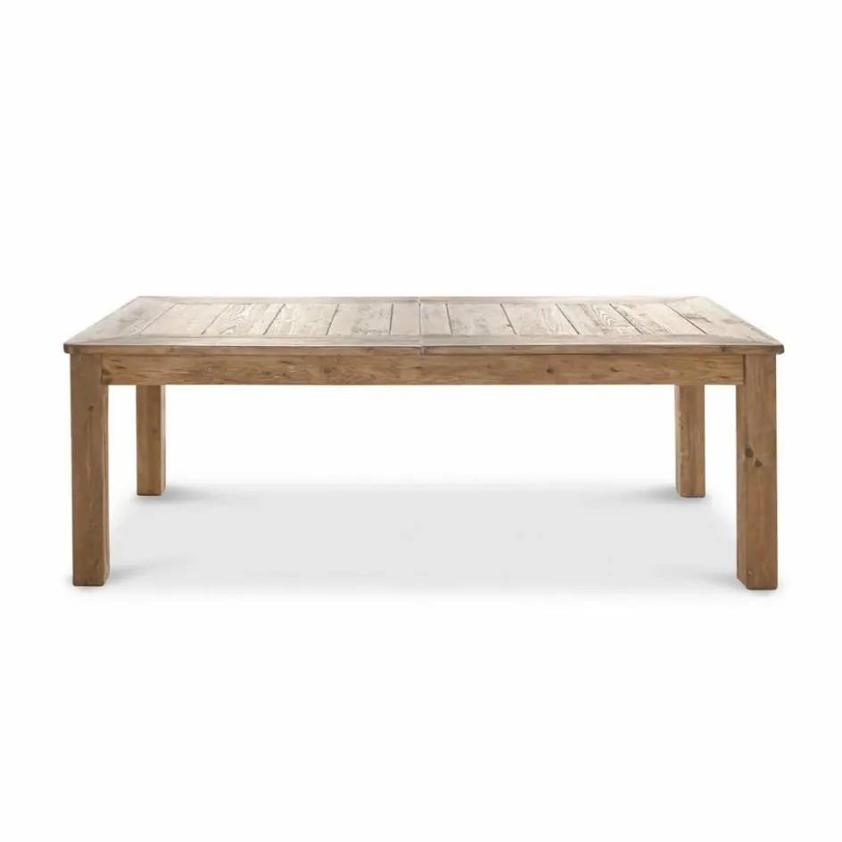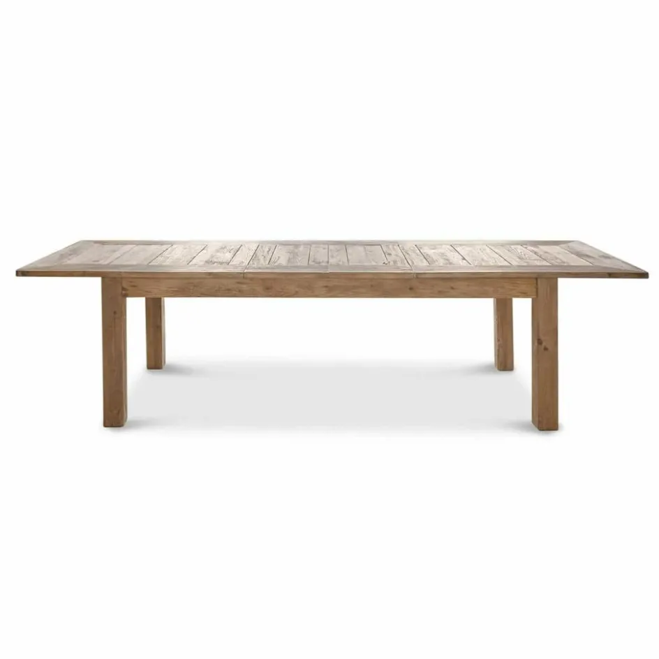Mit diesem Tisch zieht ein unverfälschtes Stück Natur bei Ihnen ein, denn er verbirgt nicht viel von dem, was draußen im Wald täglich passiert. Da bricht im Sturm ein morscher Ast ab, da pickt der Specht tief ins Holz auf der Suche nach leckeren Würmern und das Eichhörnchen baut sich eine Kinderstube in einem Hohlraum. Und obwohl der Baum dies alles und noch viel mehr jahrzehntelang übersteht, wird er irgendwann gefällt und das Holz wandert zu einem erfahrenen Tischler in die Werkstatt. Wenn dieser einen Blick für die besondere Ausstrahlung des urigen Kiefernholzes hat, wird er die größeren und kleineren Spuren eines langen Lebens im Freien nicht verstecken, sondern daraus einen Tisch von einzigartigem Charakter machen. Den idealen Mittelpunkt für ein lebendiges Familienleben und gesellige Runden mit Freunden, einen Tisch, auf den Sie außerdem im Alltag nicht übertrieben Rücksicht nehmen müssen. Also ein Tisch, wie er früher in vielen Bauernstuben und Landhausküchen stand. Aber halt, das stimmt nicht ganz. Denn die antiken Vorbilder hatten eine fixe Größe. Dieser Tisch aber ist mit einer modernen Auszugsfunktion versehen. Das bedeutet, er kann mit Hilfe von zwei Einlegeplatten zu einer stattlichen Tafel von 304 cm Länge ausgezogen werden und so 10-12 Personen Platz bieten. Verwendet man nur eine der Einlegeplatten, so erhält man eine Länge von ca. 264 cm. So kann man je nach Anzahl der Gäste ganz flexibel entscheiden, wie groß man den Tisch braucht.