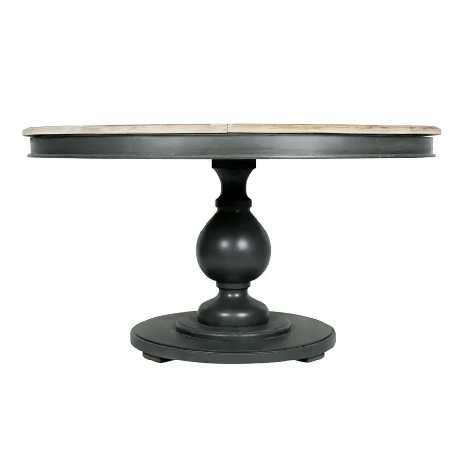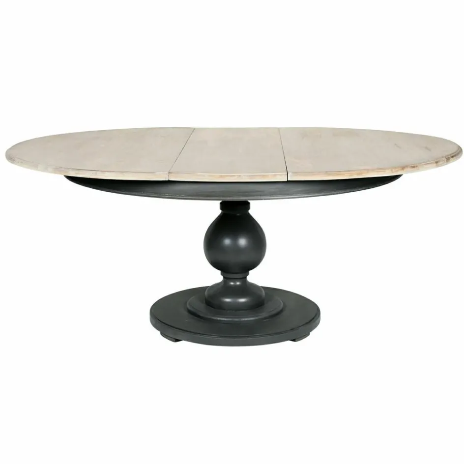 Ein attraktiver Mix aus unterschiedlichen Oberflächen: Die Platte dieses außergewöhnlichen Tisches zeigt sich in ihrem ganz natürlichen Charme. Sie ist aus hochwertigem, robustem Mangoholz und besticht durch ihre matte, naturbelassene Oberfläche. Getragen wird die Platte von einem wunderschönen gedrechselten Fuß, dem sein Lackfinish besonderen Glanz verleiht. Besonders praktisch: Vergrößern oder verkleinern Sie dieses Schmuckstück, indem Sie die Tischplatte auseinander- beziehungsweise zusammenschieben. So können Sie die Tischgröße passend zur Anzahl Ihrer Gäste gestalten. Durch Klammern an der Unterseite sind die Elemente sicher fixiert. Aber natürlich lässt sich dieses Schmuckstück nicht nur als Festtafel nutzen. Auch im Wohnzimmer, Wintergarten oder im Künstleratelier ist der Tisch ein faszinierender Blickfang und macht Ihr schönes Zuhause noch stilvoller.