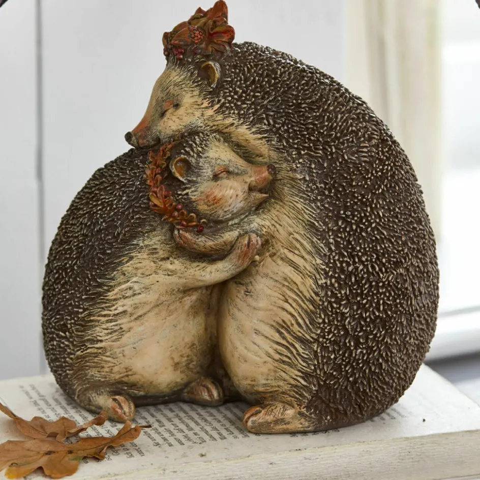 Bei diesem Anblick geht einem wirklich das Herz auf – diese zuckersüßen Deko-Igelchen kuscheln gemütlich miteinander und sehen einfach ganz reizend aus. Ihre lieben Gesichter und die liebevolle Darstellung machen viel Freude. Die Tierchen aus Polyresin sind von Hand bemalt und sehr naturnah gestaltet. Zusätzlich haben sie sich noch mit einem Blätterkranz und Eicheln auf dem Köpfchen geschmückt – niedlicher geht es fast nicht. Als Tischschmuck, Zierde auf der Fensterbank oder auf einer Kommode platziert lassen sie ihren Charme sprühen und machen Ihr Zuhause noch gemütlicher. Etwa zum Landhaus-Stil sind sie ein sehr stimmiger Akzent.