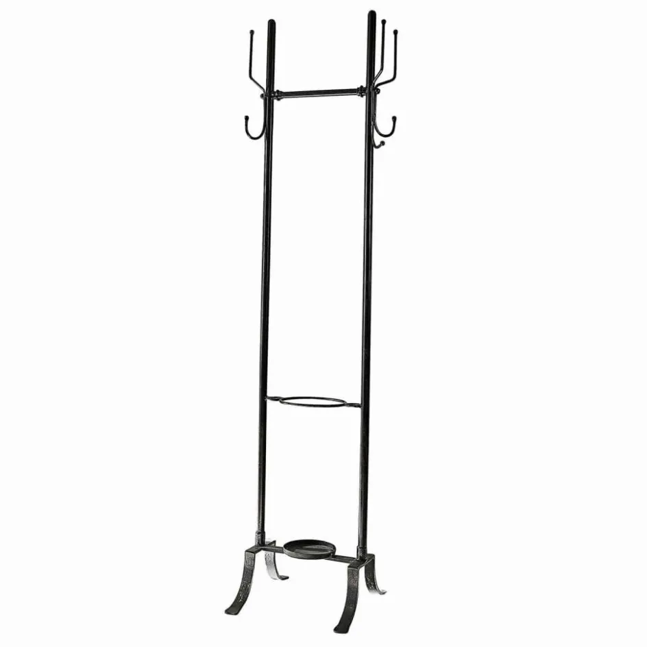 Diese Garderobe beeindruckt mit ihrer klassischen Anmutung und einem durchdachten Design. Das Eisen mit Antikbraun-Finish verleiht ihr eine charmante Patina, die von vergangener Zeit erzählt und dennoch zeitlos wirkt. Praktische Haken in verschiedenen Höhen bieten Platz für Jacken, Taschen und Hüte, während der integrierte Schirmständer nützliche Funktionalität hinzufügt. Die geschwungenen Details und der robuste Standfuß unterstreichen die hohe Handwerkskunst und machen die Garderobe zu einem funktionalen Schmuckstück für den Eingangsbereich. Ob alleinstehend oder in Kombination mit anderen Möbeln, sie verleiht jedem Raum einen Hauch von Nostalgie und Klasse.
