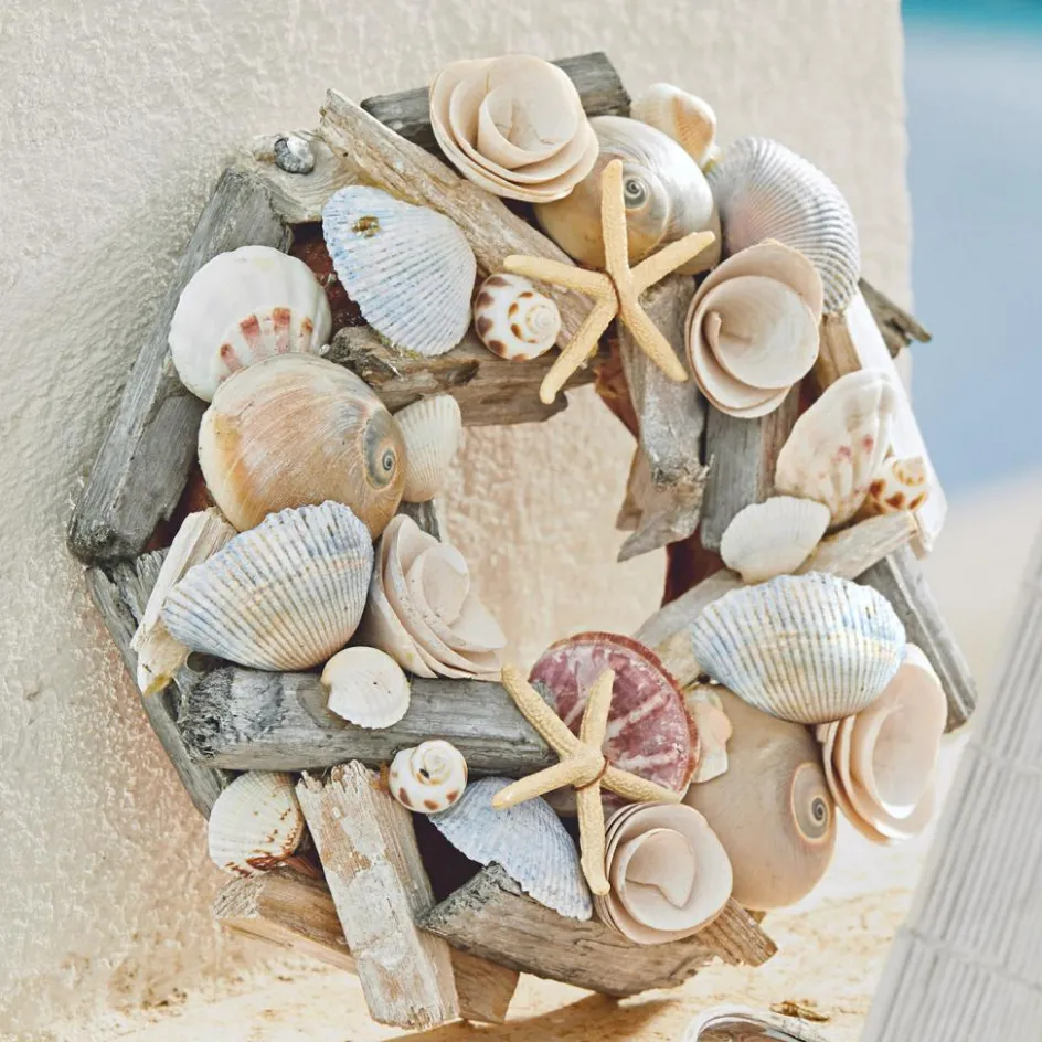 Dieser Kranz erinnert an unvergessliche Momente am Meer. Wenn die Kinder freudig jauchzend hübsche Muschelschalen in unterschiedlichen Formen und Farben im feinen Sand entdecken, während wir unsere Blicke verträumt auf den Horizont richten. Das handgearbeitete Schmuckstück besteht aus wunderschönem Strandgut, das eingesammelt, gereinigt und zu einem Kranz zusammengefügt wurde. Unterschiedliche Hölzer runden die bezaubernde Optik gekonnt ab. Es handelt sich um ein hochwertiges Naturprodukt, das in Handarbeit gefertigt wird. Jedes Stück ist ein Unikat, denn kein Kranz gleicht dem Nächsten.