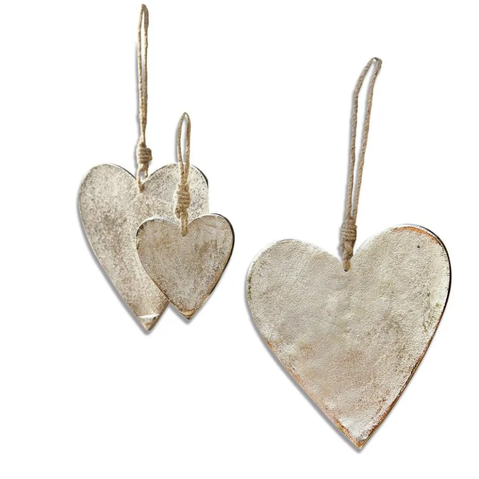 Dieses Set beinhaltet drei unterschiedlich dimensionierte Anhänger in liebreizender Herzform. Sie sind ein perfektes Geschenk für Freunde, Partner und Familie. Der feine Schimmer der antik-veredelten Oberfläche aus Aluminiumguss passt einfach hervorragend zur rustikalen Note der hübschen Jutekordeln. Die Anhänger sind sehr vielseitig und sorgen das ganze Jahr über für romantisches Flair. Ganz egal, ob am Christbaum, im Osternest oder als raffinierter Wandschmuck am Valentinstag. Das Set lässt sich auch hervorragend mit anderen Deko-Objekten kombinieren.