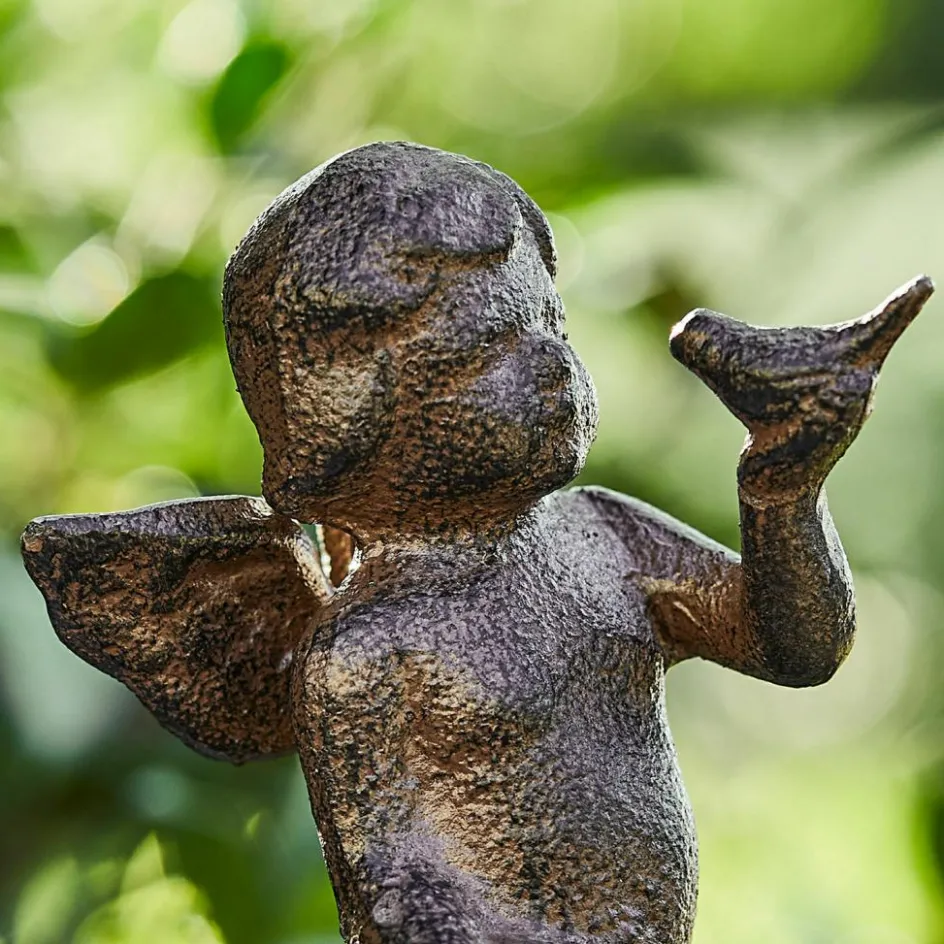 Diese Engelsfigur bringt eine besondere Atmosphäre in den Außenbereich. Mit einer sanften Geste hält er einen Vogel in der Hand, als würde er ihn beschützen oder zum Flug ermutigen. Die filigran ausgearbeitete Form verleiht ihm eine anmutige Erscheinung, während das matte Antik-Finish dem Material eine ausdrucksstarke Patina verleiht. Durch die stabile Ausführung eignet sich der Engel ideal für den Garten, den Balkon oder als Blickfang neben einer Haustür.