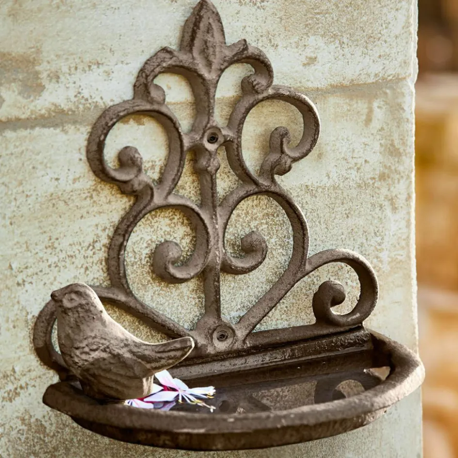 Diese Vogeltränke verbindet Nutzen und Design auf wundervolle Weise. Die feinen Ornamente und das nostalgische Antikgrau-Finish lassen sie wie ein Fundstück aus vergangenen Zeiten wirken. Ob im Garten oder auf der Terrasse, sie fügt sich harmonisch in jedes Ambiente ein. Besonders praktisch ist die Wandbefestigung, die der Vogeltränke nicht nur Stabilität verleiht, sondern auch einen dekorativen Akzent an jeder Mauer oder Wand setzt. Ein kleines Vögelchen auf dem Rand lädt dazu ein, die Natur hautnah zu erleben und den Singvögeln einen Platz zur Erfrischung zu bieten.
