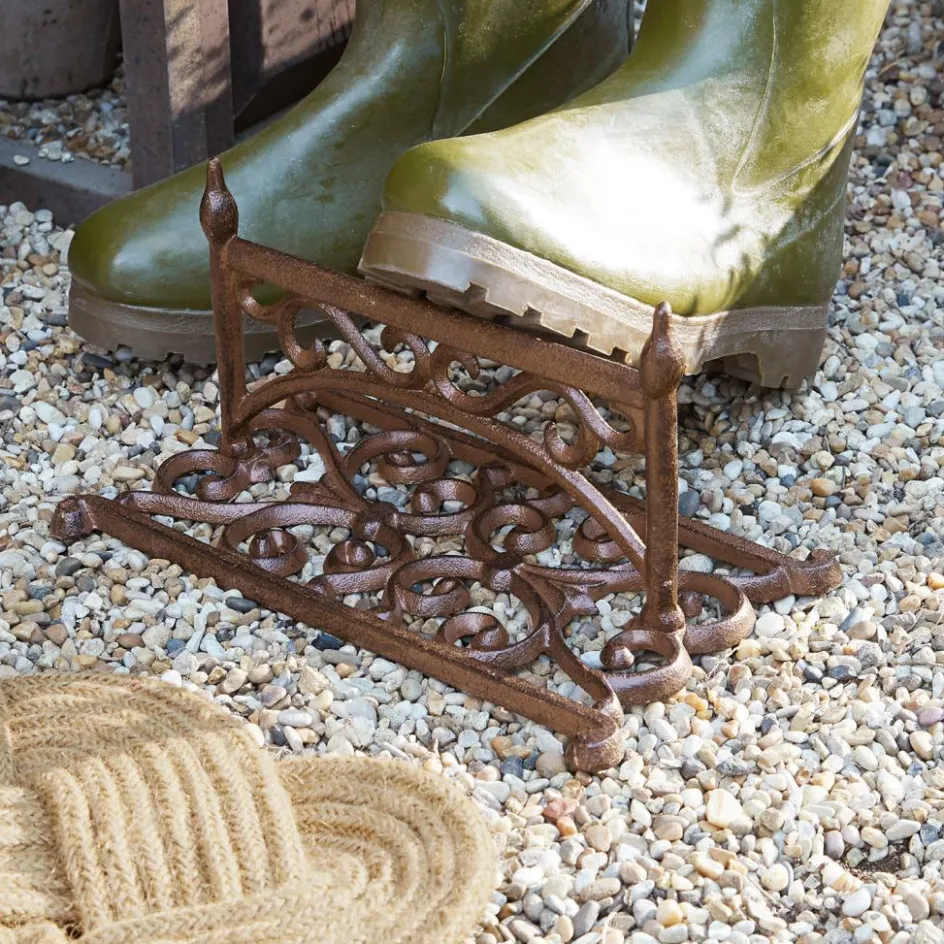 Selten war ein Schuhabstreifer so hübsch – dieses kunstvolle Design aus schwerem Gusseisen macht wirklich etwas her. Es ist romantisch verziert und erinnert an das Frankreich früherer Jahrzehnte. Genießen Sie einen Hauch Nostalgie und vereinen Sie Funktion und Dekoration ideal. Hiermit säubern Sie sich ganz leicht die Schuhe, halten das Haus sauber und verzieren gleich noch den Eingang mit. Das stilvolle Vintage-Accessoire kann auch dazu anregen, in Gedanken in alte Zeiten zu reisen und die Phantasie spielen zu lassen. Gerade in heutigen Zeiten ist das doch eine wundervolle Gelegenheit, sich in ein Nostalgie-Idyll zu träumen und dieses im eigenen Heim auferstehen zu lassen. Das Modell ist zudem sehr langlebig und stabil.