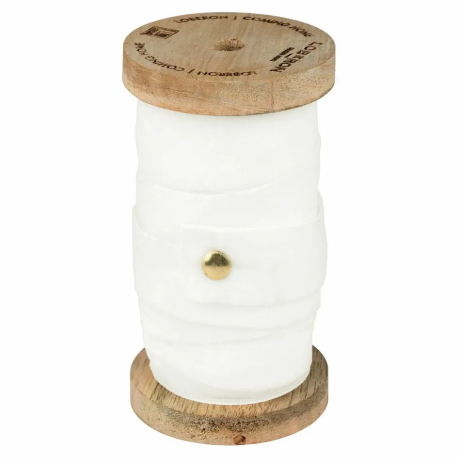 Meistens verschwinden die kleinen Haushaltshelfer nach Gebrauch schnell wieder in der Schublade. Nicht so diese Samtband-Spule. Standhaft setzt sie sich mit einer Spule aus wertvollem Mangoholz und einem Schmuckband aus weichem Samt nobel in Szene. Das LOBERON-Branding sorgt für das i-Tüpfelchen und verrät die Herkunft des hübschen Accessoires. Der Retro-Charme ist unverkennbar. Und die Vielseitigkeit ist enorm. Denn das originelle Design ist zusammen mit schönen Stoffen und kleinen Schmuckstücken auch als Dekoakzent perfekt einsetzbar. Das 1 m langes Samtband mit einseitigem Flor lässt sich komplett abrollen und verleiht Ihren kreativ verpackten Geschenken ein edles Finish. Stil und Funktion können eben wunderbar harmonieren.