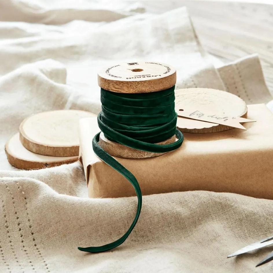Wer kennt sie nicht, die kleinen praktischen Haushaltshelfer, die ihren Charme durch die Fertigung aus Kunststoff schnell wieder verlieren. Ganz anders diese edle Samtband-Spule, deren Look nostalgisches Flair versprüht. Mit einer massiven Holzspule aus Mangoholz und einem komplett abrollbaren, weichen Samtband präsentiert sie sich so schön, dass man sie immer gerne zur Hand nimmt. Und die Freude am Verzieren und Dekorieren steigert sie um ein Vielfaches. Das LOBERON-Branding ist stilvolles Extra und sorgt dafür, dass die Herkunft des Schmuckstücks kein Geheimnis bleibt. Ihre Verwendungsmöglichkeiten sind nahezu unbegrenzt: Sie können damit Geschenken den letzten Schliff geben, kreative Deko-Arrangements veredeln oder Stoffservietten hübsch binden. Das Band ist ganze 10 Meter lang, was ausreichend Länge für viele Ideen bietet. Auch als 4er Set unter 21329 erhältlich.