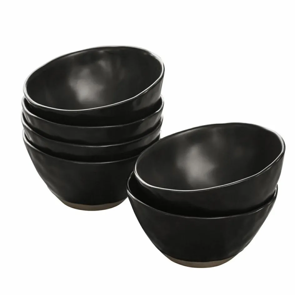 Eine Extraportion Stil bitte – dieses schicke 6er Set bezaubert mit einem individuellen Design. Es hat mediterranen Charme. Die sechs Schüsseln haben einen reizenden, handgetöpfert wirkenden Charakter. So werden kleine, bewusste Unebenheiten zum interessanten Detail. Das Set mit persönlicher Note besteht aus glänzend glasiertem Steinzeug mit einem dekorativen, dunklen Rand und einem unglasierten Boden. Die schönen Schalen lassen sich sehr vielseitig einsetzen – natürlich für feine Leckereien wie Eis, Joghurt, Früchte oder süße Desserts. Doch auch Suppen und kleine Salate schmecken hieraus gleich noch besser. So sind sie von morgens bis abends ein perfekter Begleiter für Ihren stilvoll gedeckten Tisch. Wer mag, kann sie auch mit Dekorativem befüllen. Zu vorhandenem Geschirr oder als Ergänzung zum passenden Set, hiermit beweisen Sie jederzeit guten Geschmack.