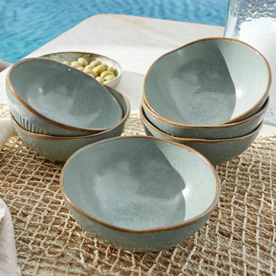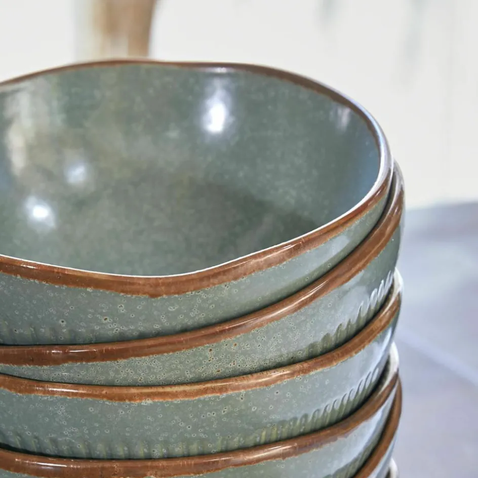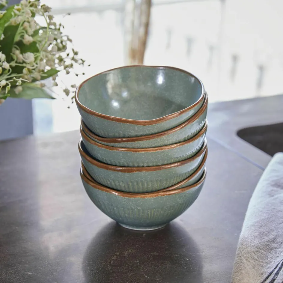 Dieses 6er Set Schüsseln aus Steinzeug bringt die Schönheit handwerklicher Kunst in Ihr Zuhause. Die bewusst unebene Form und das feine Rillen-Muster verleihen den Schüsseln eine natürliche und authentische Ausstrahlung, die das Auge erfreut. Jedes Stück dieses Sets ist einzigartig, was dem Geschirr einen besonderen Charme verleiht und Ihre Tischdekoration mit einem Hauch von Individualität und Leichtigkeit bereichert. Ob für den Alltag oder besondere Anlässe – diese Schüsseln bringen rustikale Eleganz in Ihre Küche und auf Ihren Tisch. Das langlebige Steinzeug sorgt zudem für eine angenehme Haptik und harmoniert wunderbar mit verschiedenen Einrichtungsstilen.