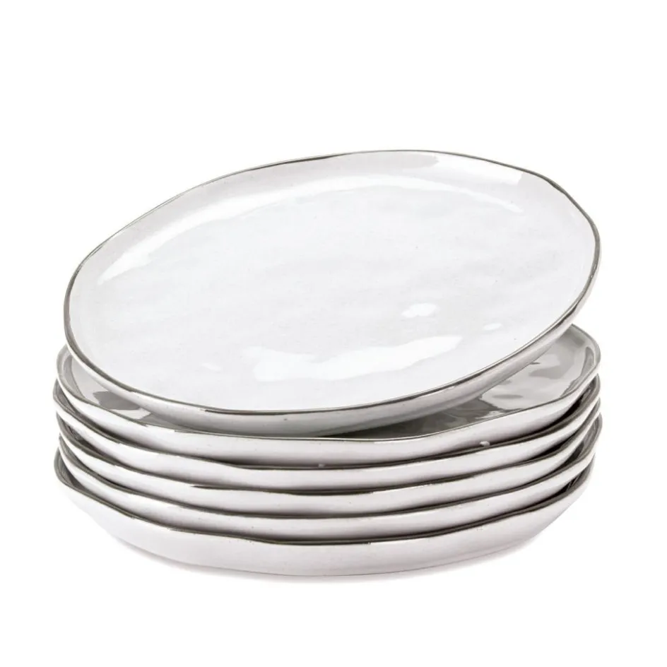 Dieses stilvolle 6er Set bezaubert mit einem charmanten und individuellen Design mit mediterranem Charakter. Die sechs Teller zeichnet eine reizende, handgetöpfert wirkende Erscheinung aus. Bewusste Unebenheiten werden hier zum persönlichen Detail mit einer Extraportion Stil. Die Teller bestehen aus glänzend glasiertem Steinzeug mit einem dekorativen, dunklen Rand und einem schönen unglasiertem Boden. Sie lassen sich sehr vielseitig nutzen – für das Frühstücksbrötchen am Morgen, kleine Snacks und Naschereien wie Käse, Eis, Joghurt oder Früchte, Pasta und Salate zu Mittag oder das raffinierte Dinner am Abend. Hiermit ist Ihr Tisch rund um die Uhr gekonnt gedeckt, und alles schmeckt gleich noch in bisschen besser. Wer möchte, kann sie natürlich auch mit Dekorativem wie Muscheln oder hübschen Steinen schmücken. Zu Ihrem bereits vorhandenem Geschirr oder als Ergänzung zum passenden Set, hiermit beweisen Sie ein Auge für reizvolle Details.