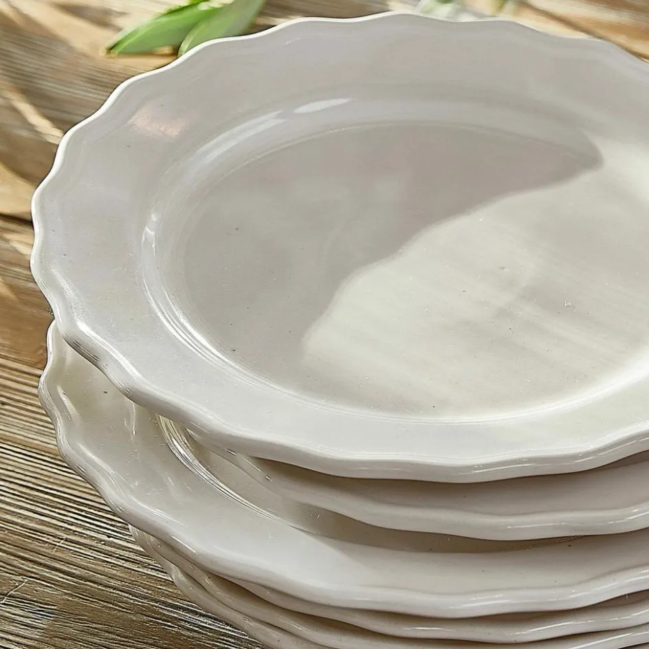 Das 6-teilige Teller-Set aus Steinzeug bringt ein Gefühl von Harmonie und Stil in Ihren Alltag. Jedes Teil ist sorgfältig gefertigt, mit einer glänzenden Oberfläche in Weiß und subtil geriffelten Rändern, die dem Teller eine besondere Textur verleihen. Diese Teller sind groß genug für Hauptgerichte und eignen sich hervorragend für festliche Anlässe oder den täglichen Gebrauch. Robust und dennoch zart in der Optik – sie passen perfekt zu jeder Tischdekoration und verleihen Ihrem Esstisch einen klassischen Charme.
