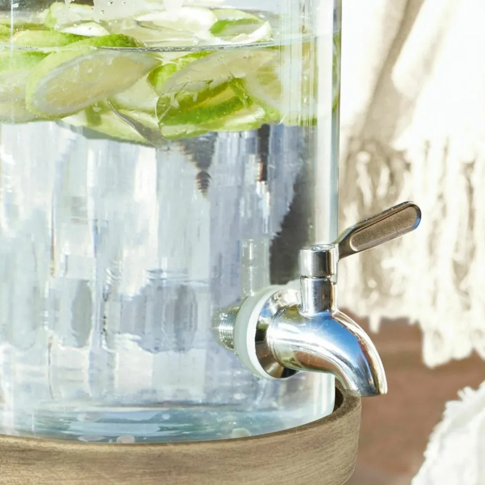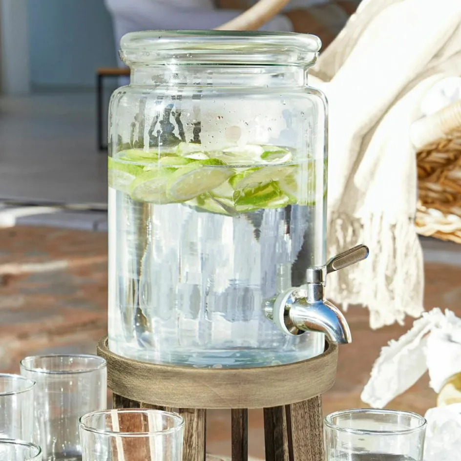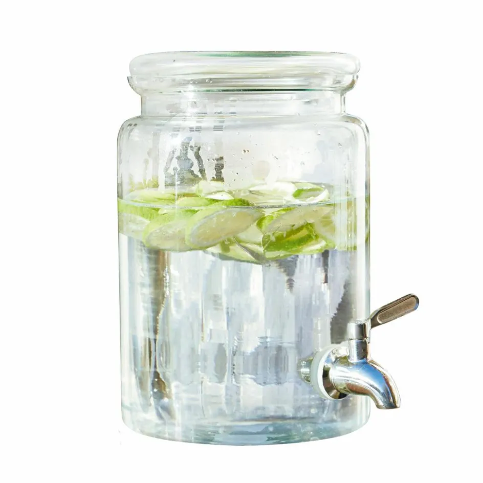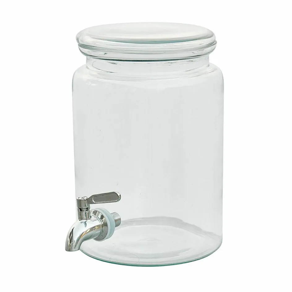 Lassen Sie sich von dem charmanten Flair dieses mundgeblasenen Getränkespenders verzaubern, der in jeder Hinsicht ein Ausdruck von Qualität und Handwerkskunst ist. Der zarte Glanz des klaren Glases, sorgfältig geformt in eine schlichte, einladende Silhouette, macht diesen Spender zu einem Mittelpunkt jeder Tafel. Mit einem Fassungsvermögen von 3,1 Litern bietet er genügend Raum für kreative Getränkekreationen, von erfrischenden Limonaden bis hin zu aromatischen Eistees. Der Edelstahl-Ausgießer fügt sich nahtlos in das Design ein und ermöglicht ein tropffreies Servieren, das die Freude am Genuss nur noch steigert. Dieser Wasserspender ist mehr als ein Gebrauchsgegenstand – er ist eine Einladung, das Beisammensein mit Stil und Freude zu feiern.