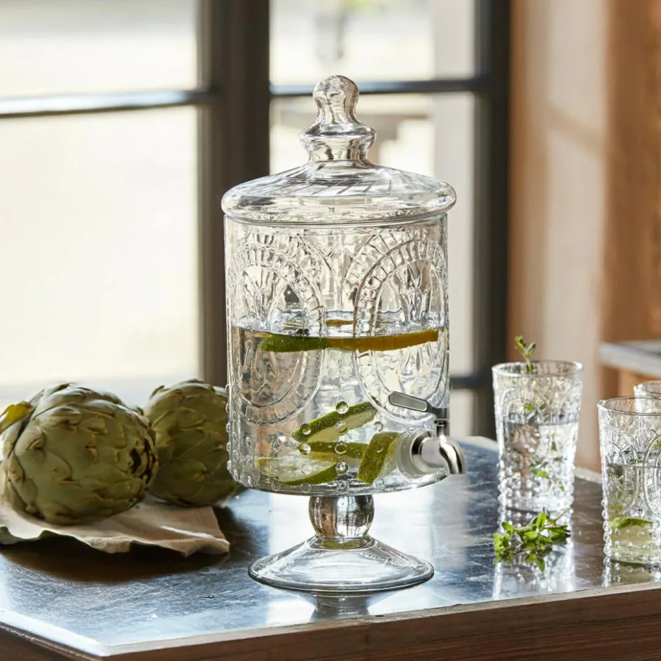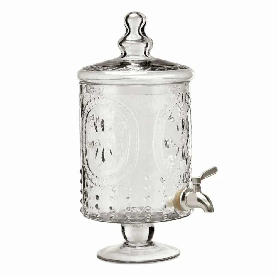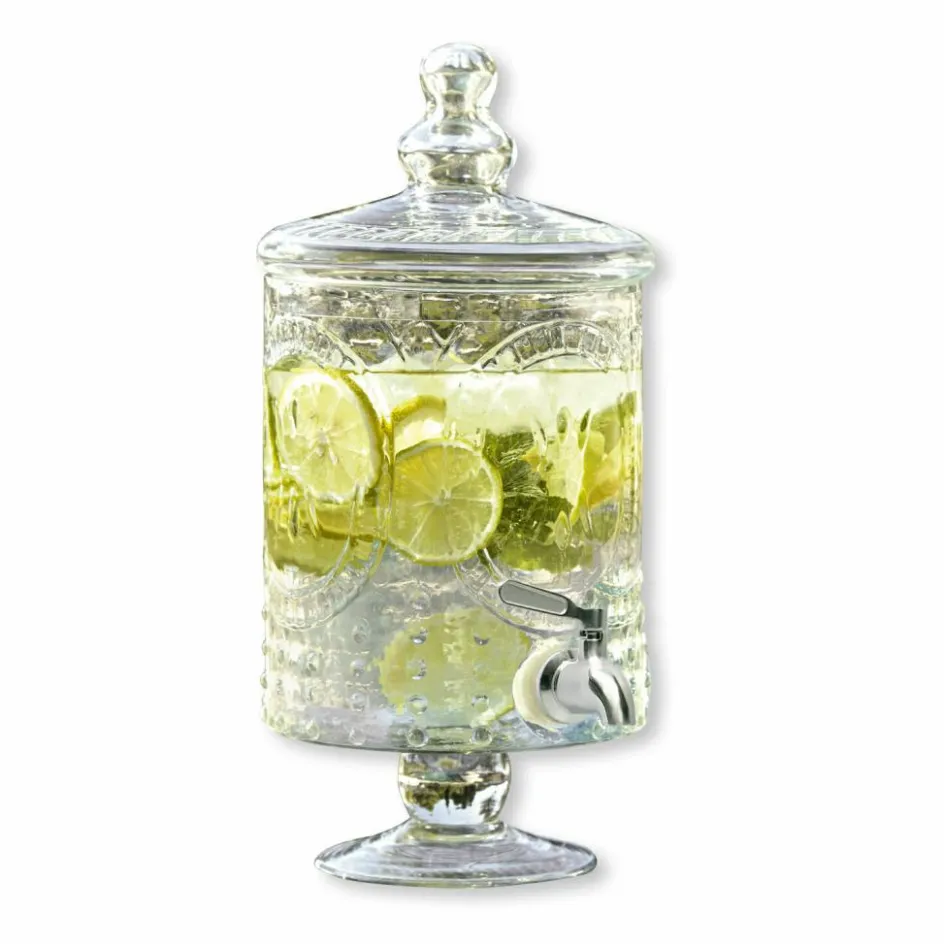 Très jolie! Dieser Schatz aus klarem Glas ist wirklich wunderhübsch. Der edle Getränkespender im klassischen französischen Stil bezaubert mit einer feinen Lilien-Prägung und eleganter Form, die auf einem feinen Fuß ruht. Hieraus lassen sich Wasser mit Zitronenscheiben, gesunde Säfte oder eine süße Limonade besonders gut genießen. Die Getränke lassen sich dank des Zapfhahnes ganz einfach abfüllen. So macht es richtig Spaß, immer genügend zu trinken. Ob zur Gartenparty oder solo auf dem Balkon – an diesem schönen Stück werden Sie viel Freude haben.