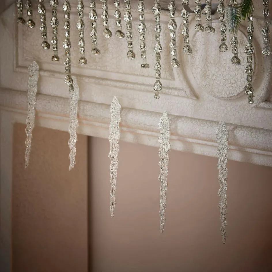 Wenn der Winter Einzug hält und die Natur in Eiskristallen schimmert, fängt diese Girlande genau diese Magie ein: Jeder einzelne Eiszapfen besteht aus aufwendig geformtem Glas – mit unregelmäßiger Tropfenstruktur und faszinierender Tiefe. Das transparente Material reflektiert das Licht auf besonders stimmungsvolle Weise, sodass ein sanftes Glitzern durch den Raum tanzt. Ob am Fenster, über dem Kamin oder als zarter Baumschmuck – diese Girlande verleiht Ihrer Winterdekoration etwas Poetisches.