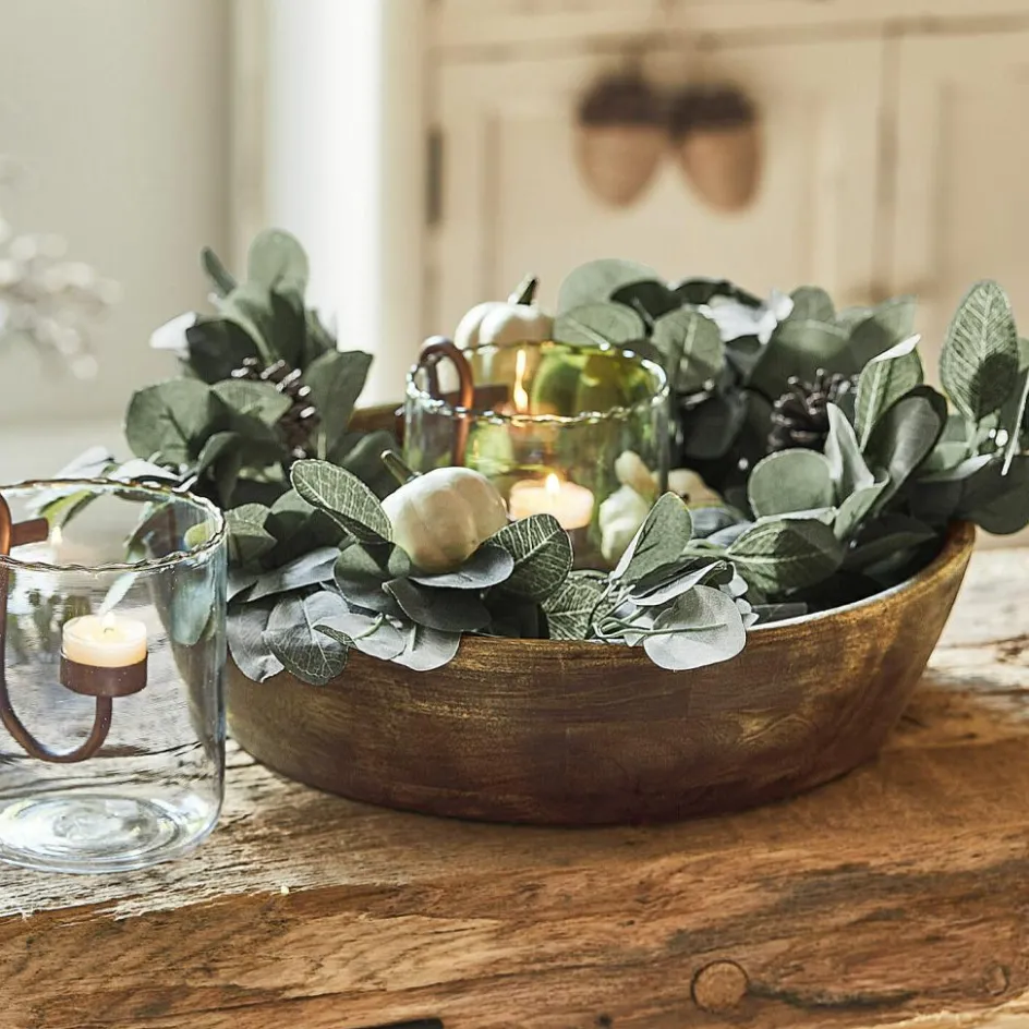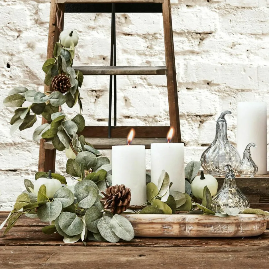 Fangen Sie die Schönheit des Herbstes ein und lassen Sie dem Kürbis als das Herbst-Symbol überhaupt den großen Auftritt. Bei dieser reizenden Girlande ist er in Form hübscher, kleiner Deko-Kürbisse vertreten. Dazu gesellen sich echte Tannenzapfen und weiche Deko-Blätter. Die großzügige Girlande lässt sich wunderbar um eine Kaminkonsole, am Fenster oder auch um den Türrahmen drapieren – hier können Sie völlig kreativ werden. Zum Beispiel zum Landhaus-Stil gelingt hiermit ein sehr harmonischer Effekt, der jedes Ambiente verschönert. Die niemals welkende Girlande können Sie jahrelang immer wieder verwenden, ohne dass sie an Frische verliert. Sie ist immer eine Freude.