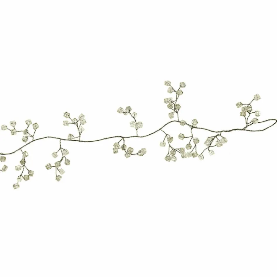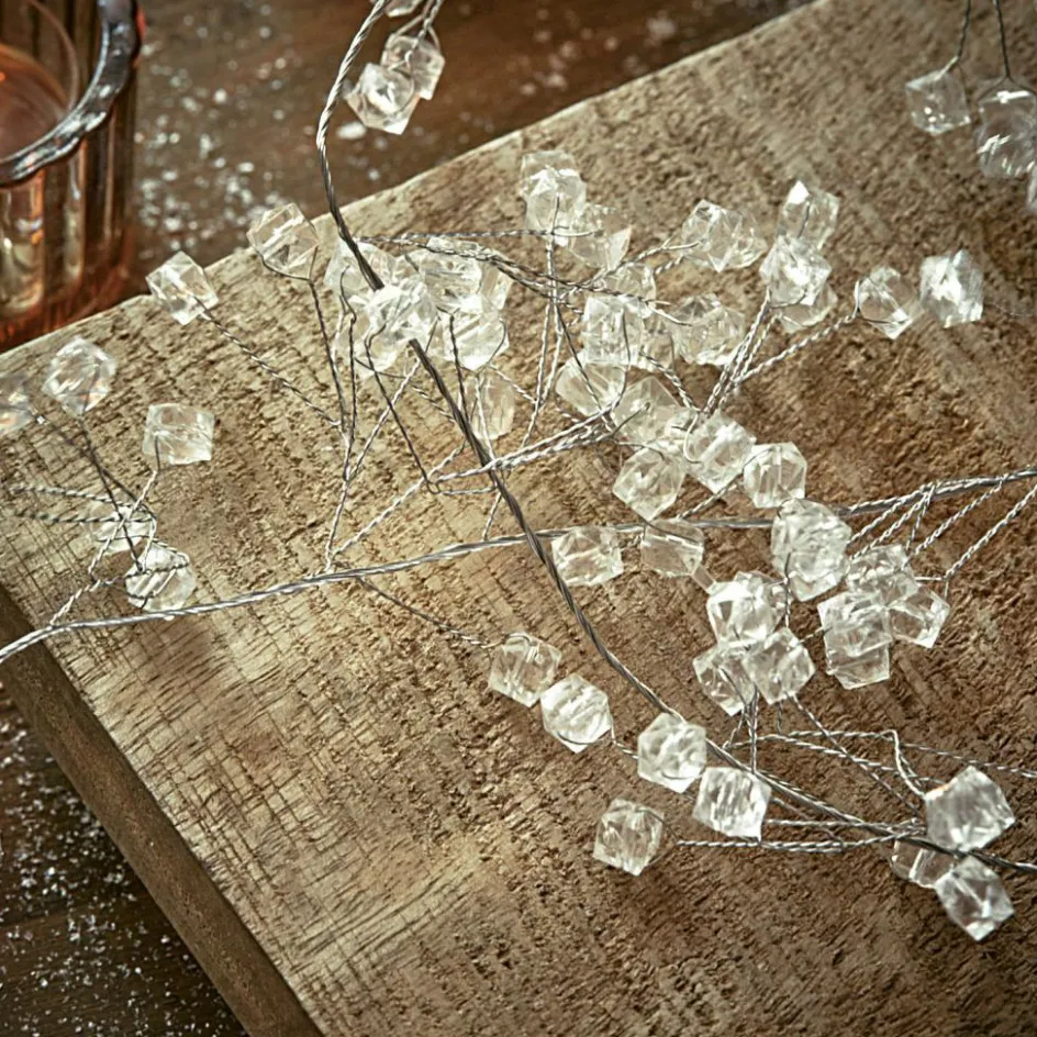 Wie aus dem Winter Wonderland – diese hübsche und filigrane Girlande gefällt mit feiner Eiskristall-Optik, die durch quadratische Acrylperlen entsteht. Die Perlen sind auf einem flexiblen Draht aus Eisen aufgefädelt, sodass diese schicke Girlande biegsam ist und sich überall nach Belieben drapieren lässt. Ob am Fenster, am Weihnachtsbaum oder am Bettgestell, hiermit wird es winterlich schön. Das stilvolle Design harmoniert mit jedem Ambiente und verschönert die kalte Jahreszeit. Auch ein Adventskranz lässt sich hiermit stilvoll veredeln – der Deko-Lust sind hier keine Grenzen gesetzt. Und natürlich ist die Girlande nicht nur eine Freude im Winter, sondern das ganze Jahr hindurch.