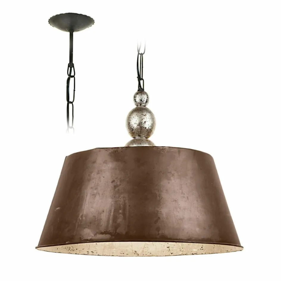 Wissen Sie, was uns beim Anblick dieser Hängelampe als erstes durch den Kopf schoss? Es waren nur drei Buchstaben: „Wow!“ Die Leuchte wirkt alleine schon aufgrund der Schirmgröße imposant und offenbart auf den zweiten Blick zauberhafte Details. Sie wird komplett in Handarbeit gefertigt und das erklärt auch den unverfälschten, rauen Charme des patinierten Eisenschirms. Seine Innenseite ist mit einem besonderen Antik-Finish veredelt, das im Lichtschein silbrig schimmert. Gekrönt wird das Ganze von einem Aufsatz aus Mangoholz, der ebenfalls mit einem Antiksilber-Finish perfektioniert wurde.