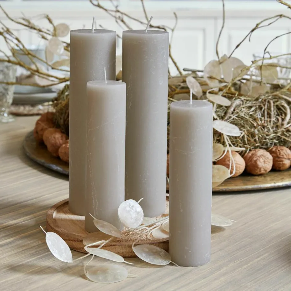 Die handgefertigten Wachskerzen strahlen eine warme, einladende Atmosphäre aus, die jedes Zuhause in ein gemütliches Licht taucht. Mit ihrer durchgefärbten, geruchslosen Oberfläche sind sie nicht nur ästhetisch ansprechend, sondern auch funktional. Jede Kerze ist ein Unikat, gefertigt mit Liebe zum Detail, und bietet eine lange Brenndauer, die Ihnen viele Stunden der Entspannung und Besinnlichkeit schenkt. Die harmonische Kombination aus zwei großen Kerzen (20×5 cm) und zwei etwas kleineren Kerzen (15×4 cm) schafft ein vielseitiges Arrangement, das sowohl für festliche Anlässe als auch für den täglichen Gebrauch perfekt geeignet ist.