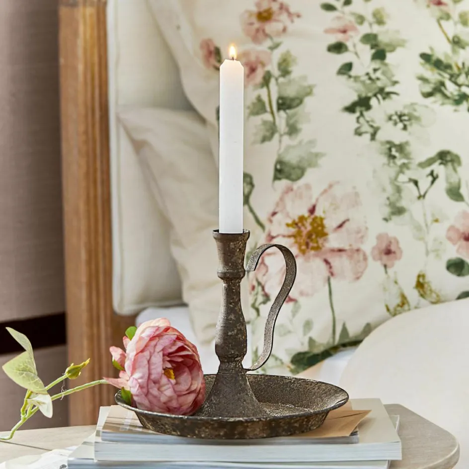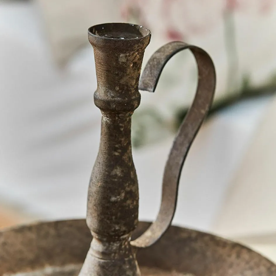 Der Kerzenhalter aus Eisen besticht durch sein charmantes Antikrost-Finish, das ihm einen antiken und rustikalen Look verleiht. Die stilvolle, leicht geschwungene Halterung macht ihn nicht nur praktisch, sondern verleiht ihm zusätzlich eine dekorative Note. Dieser Kerzenhalter wirkt durch seine schlichte und dennoch ausdrucksstarke Form besonders authentisch und passt perfekt in Landhausstile oder Vintage-Einrichtungen. Ob auf dem Esstisch, im Flur oder als Highlight in einem Regal – dieses Accessoire schafft eine warme und gemütliche Atmosphäre.