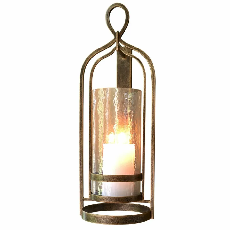 Der Wandkerzenhalter vereint zeitlose Eleganz und rustikale Robustheit in einem faszinierenden Design. Das zarte, antikgoldene Finish der Eisenhalterung harmoniert wunderbar mit dem herausnehmbaren Glas, das durch seine gehämmerte Oberfläche ein zauberhaftes Lichtspiel erzeugt. Ob als akzentuierte Beleuchtung in Flur oder Wohnzimmer, als Hingucker auf dem Balkon oder als dekoratives Element an der Terrassenwand – dieses Schmuckstück verleiht jedem Ort eine warme, behagliche Atmosphäre. Dank der hochwertigen Materialien und der präzisen Verarbeitung bleibt es über Jahre hinweg eine strahlende Ergänzung Ihrer Wohnwelt.