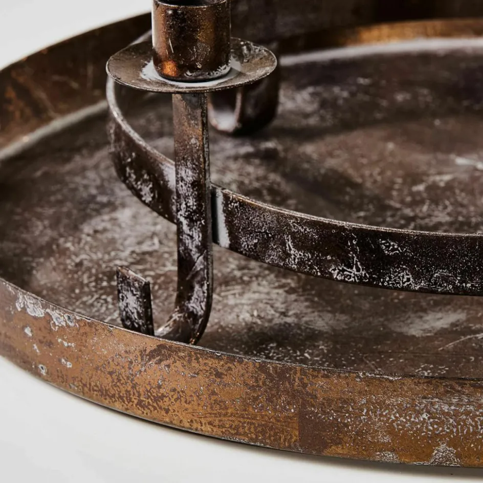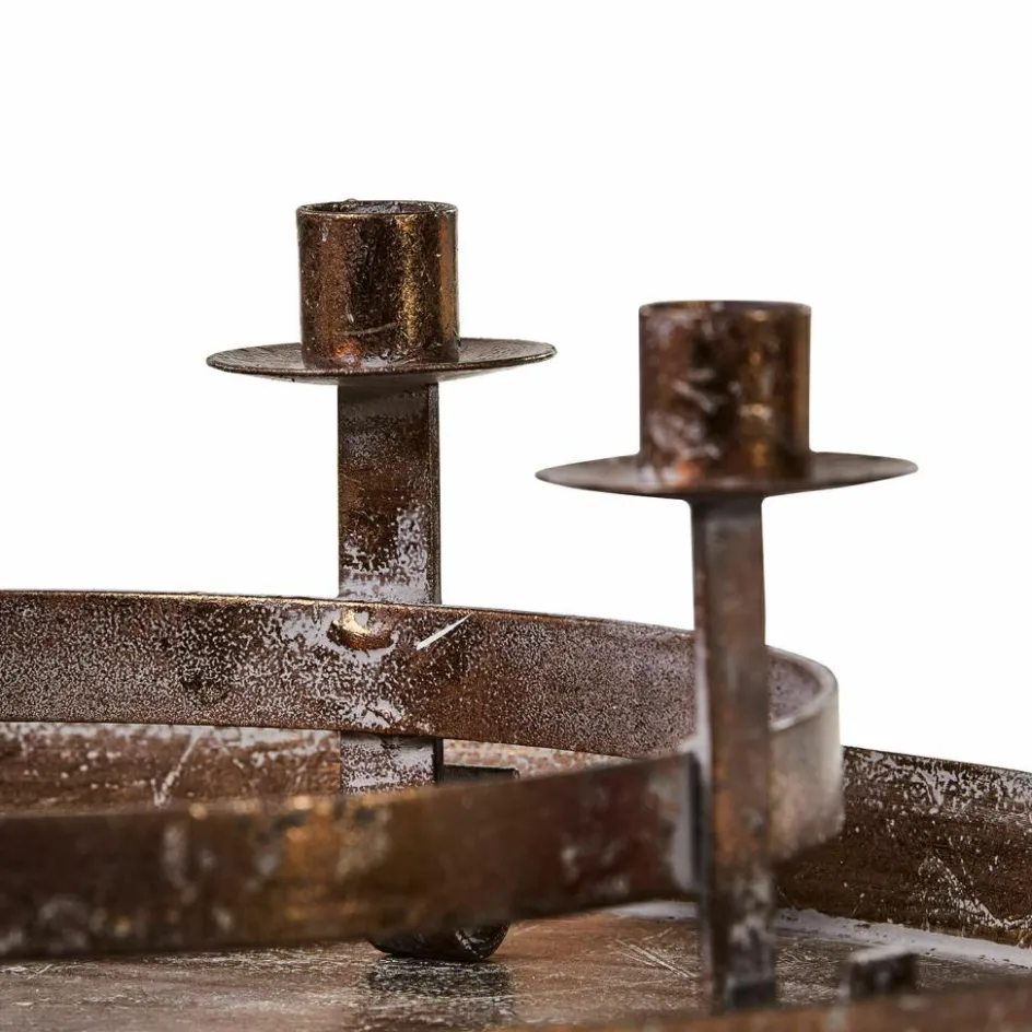 Der Kerzenhalter mit Tablett ist ein wahres Schmuckstück für Ihr Zuhause. Gefertigt aus robustem Eisen und veredelt mit einem trendigen Rost-Finish, bringt er rustikalen Charme in jeden Raum. Die einzigartige Patina verleiht dem Kerzenhalter eine besondere Note, die perfekt zu einem gemütlichen Ambiente passt. Nutzen Sie ihn als stilvollen Adventskranz oder als dekoratives Highlight zu jeder Jahreszeit. Die erhöhte Form bietet Platz für vier Kerzen, die auf dem Tablett sicher und stabil stehen. Ob auf dem Esstisch, der Kommode oder dem Sideboard – dieser Kerzenhalter zieht alle Blicke auf sich und sorgt für eine stimmungsvolle Atmosphäre. Kerzen sind nicht im Lieferumfang enthalten, sodass Sie Ihre eigenen Favoriten einsetzen und so die Dekoration individuell gestalten können.+