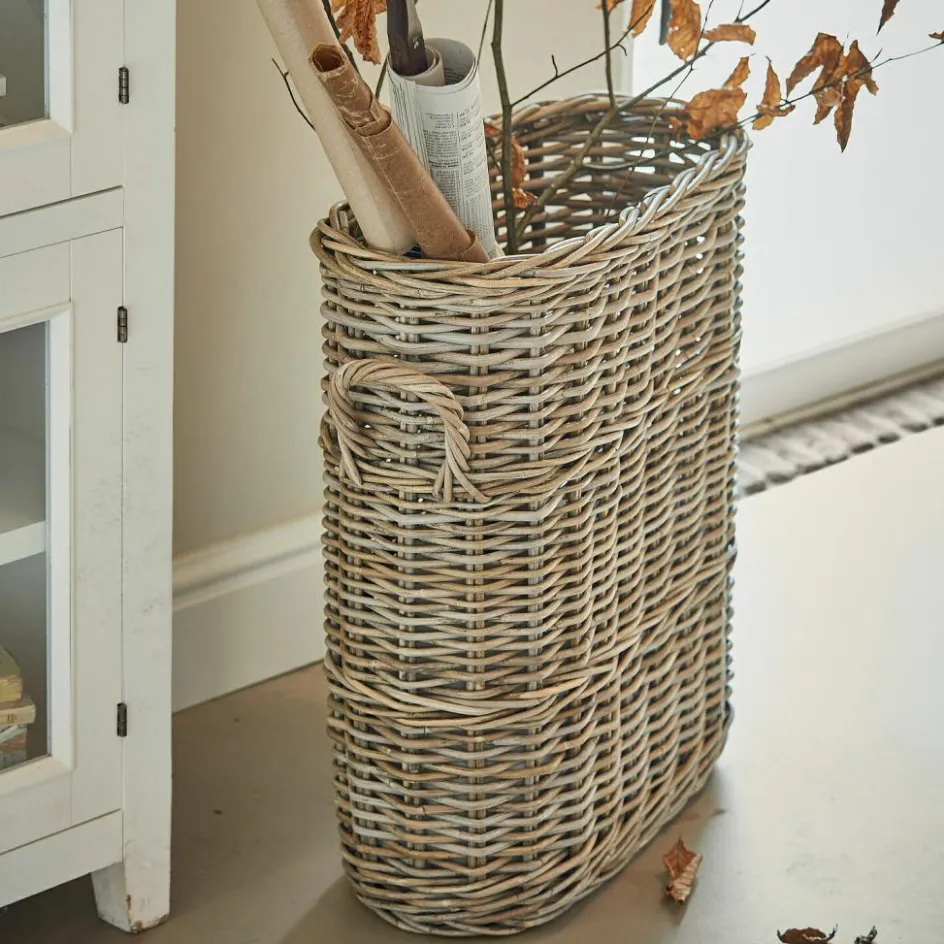 Wer gut informiert sein möchte, dem reicht in der Regel nicht der schnelle Click ins Internet, wer Hintergrund-Recherchen, Kommentare und ausführliche Berichte zu den verschiedensten Themen sucht, wird eine klassische Tages- oder Wochenzeitschrift abonniert haben. Und vielleicht noch die eine oder andere Zeitschrift, die auch nicht in einem Tag gelesen ist. Und das bedeutet Berge von Papier im Wohnraum. Sie wissen, wovon wir reden? Dabei ist Ordnung halten doch so einfach. In diesem Zeitungshalter sind Ihre Zeitungen und Zeitschriften ordentlich verstaut, wenn sie nicht gebraucht werden, aber stets sofort griffbereit, wenn Sie Zeit und Muße haben, sich in die Artikel zu vertiefen. Das Beste dabei: Mit diesem Zeitungshalter erwerben Sie außerdem ein Wohn-Accessoire, das das stimmige Bild eines wohnlichen Zuhauses mitprägen wird. Dafür ist in erster Linie das schöne Naturmaterial Rattan verantwortlich, aus dem der Zeitungshalter in sorgfältiger Handarbeit gefertigt wurde. Die Naturfaser Rattan, genauer die Lianen der Rotangpalme, wurden hier zu einem besonders dichten, gleichmäßigen Flechtwerk verarbeitet, dessen Qualität sich auch an den sauberen Abschlusskanten und den zwei eingearbeiteten Griffen zeigt. Die Formgebung – hoch, aber schmal – wurde den Dimensionen zusammengefalteter Zeitungen bzw. von Journalen angepasst, so dass der Zeitungshalter auch nicht viel Platz braucht und ganz dicht am Sofa platziert werden kann.