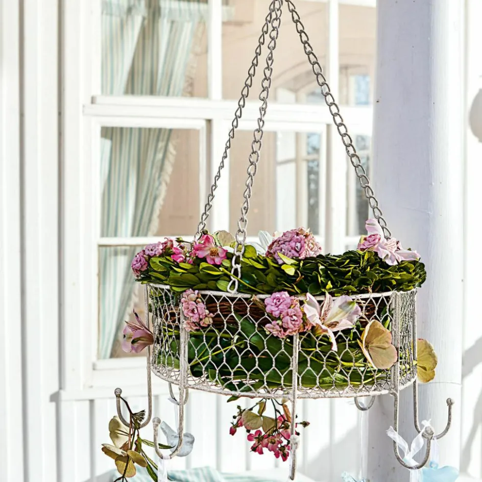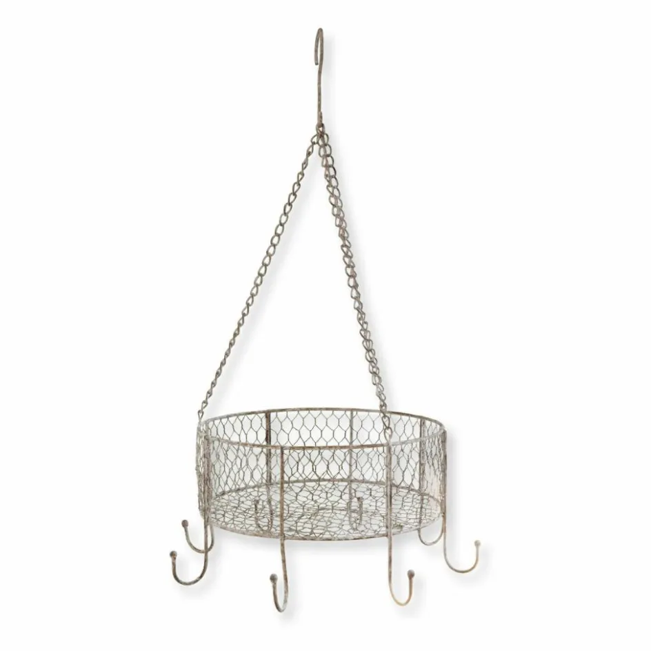 Dieser Hängekorb aus schönem Eisen ist ein toller Akzent, nicht nur für jede Küche, sondern auch für den Eingangsbereich, den Hobbyraum und die Terrasse! Die schlichte Eleganz des Hängekorbs passt wirklich zu jedem Einrichtungsstil. Er ist nicht nur hübsch anzusehen, sondern er verbessert die Raumeffizienz, da keine Stellfläche benötigt wird. Das raffinierte Hängedesign wird durch mehrere formschöne Haken erweitert, die für mehr Stauraum und einen schnellen Zugriff auf die Utensilien des Alltags sorgen. Der Fantasie sind dabei keine Grenzen gesetzt und an einem stabilen Deckenhaken befestigt, lässt sich das schöne Stück sogar als kreative Garderobe verwenden. Kurz: Eine großartige Lösung für alle Bereiche, in denen Sie mehr Platz für Ihre Siebensachen benötigen.