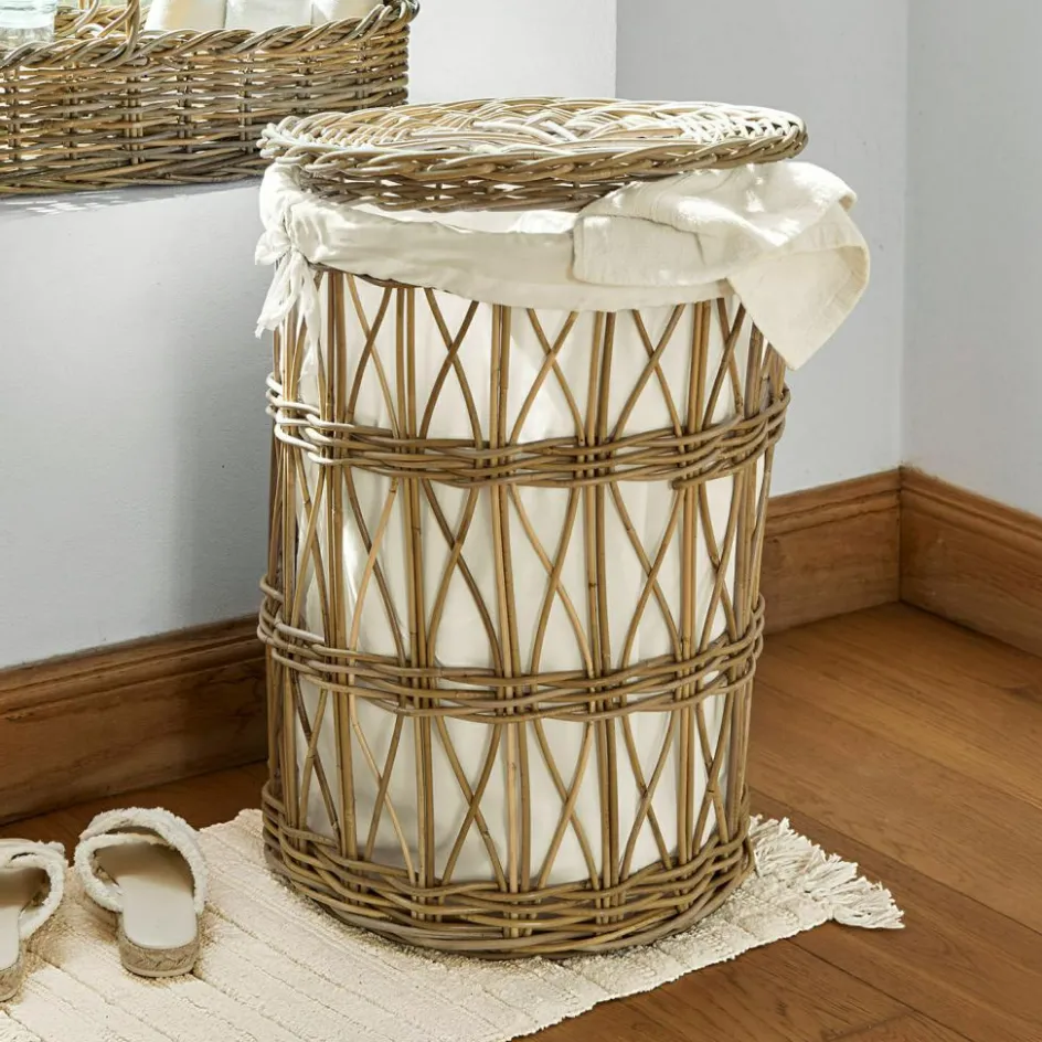 Der Wäschekorb aus natürlichem Rattan ist nicht nur funktional, sondern auch ein echter Hingucker. Die offen geflochtene Struktur verleiht dem Korb Leichtigkeit und gleichzeitig einen charmanten, natürlichen Look. Der herausnehmbare Baumwollbezug ist besonders praktisch und einfach in der Handhabung – ob für die tägliche Wäsche oder als dekoratives Element in Ihrem Zuhause, dieser Korb erfüllt beides. Dank der neutralen Farbgestaltung passt er in verschiedenste Einrichtungsstile, von klassisch bis modern.