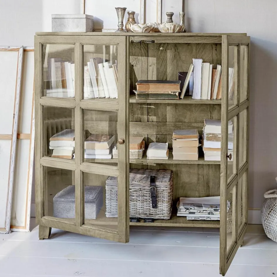 Ganz viel ländlichen Charme verbreitet diese Kommode in ihrer handwerklichen Perfektion – und dennoch wirkt sie zeitgemäß durch ihre Qualität aus massivem Mangoholz. Die Oberfläche ist lasiert und gewachst – so kommt die schöne Maserung und Farbe des Holzes ideal zur Geltung. Die dekorativen Glastüren im Sprossenfenster-Look verleihen dem Möbel eine optische Leichtigkeit. Gleichzeitig gewähren sie den Blick in den Innenraum, der durch drei großzügige Fächer ausreichend Stellfläche bietet. Ein gelungener Mix aus Design und Funktion, der sich in einem Landhaus-Interieur ebenso sehen lassen kann, wie in einer Vintage angelehnten Einrichtung. In der Küche findet das Geschirr seinen Platz, im Wohnzimmer können Bücher aufbewahrt oder hübsche Accessoires zur Schau gestellt werden.