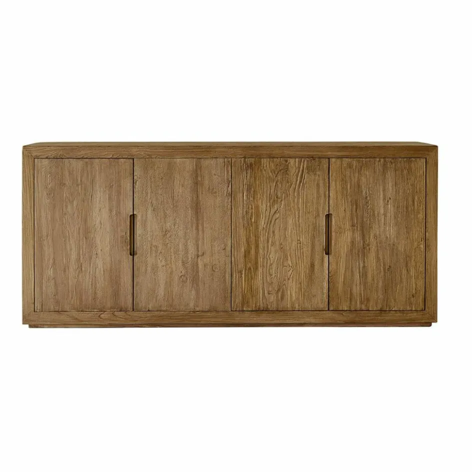 Klar in der Form, kraftvoll in der Wirkung – diese Kommode begeistert mit einem rustikalen Look, der auf Authentizität setzt. Gefertigt aus wiederaufbereitetem Ulmenholz, lebt sie von der individuellen Maserung, feinen Rissen und natürlichen Unebenheiten, die ihr einen ganz eigenen Charakter verleihen. Die strukturreiche Oberfläche erinnert an verwittertes Holz in alten Werkstätten oder ländlichen Scheunen – bewusst unperfekt und gerade deshalb so charmant. Die vier Türen fügen sich nahtlos ins reduzierte Design ein und machen die Kommode zum funktionalen Begleiter mit stilvollem Understatement. Ob im Esszimmer, Flur oder Wohnzimmer – dieses Stück wirkt geerdet, ehrlich und souverän.