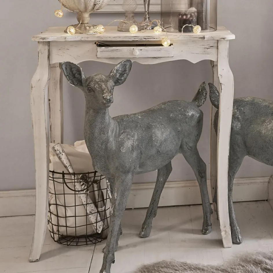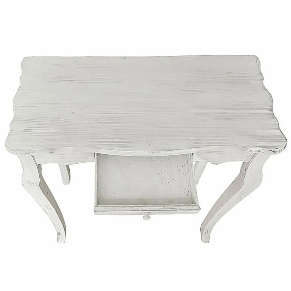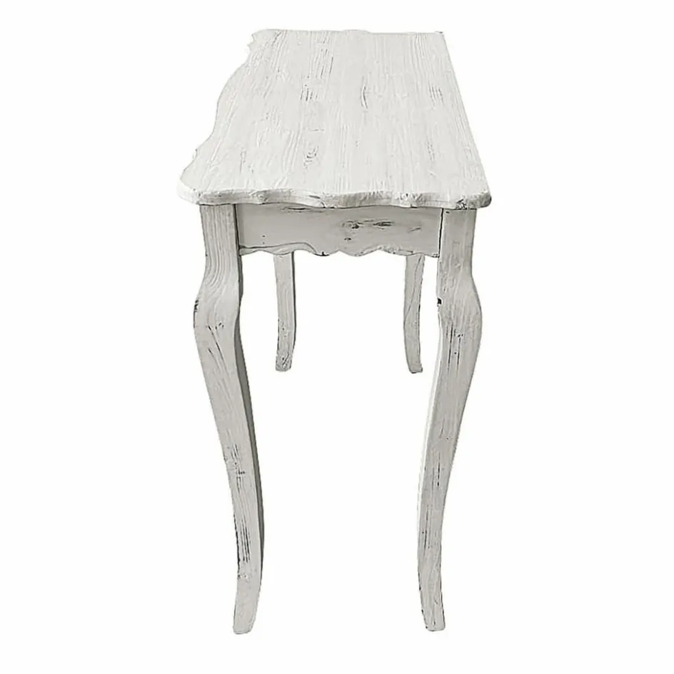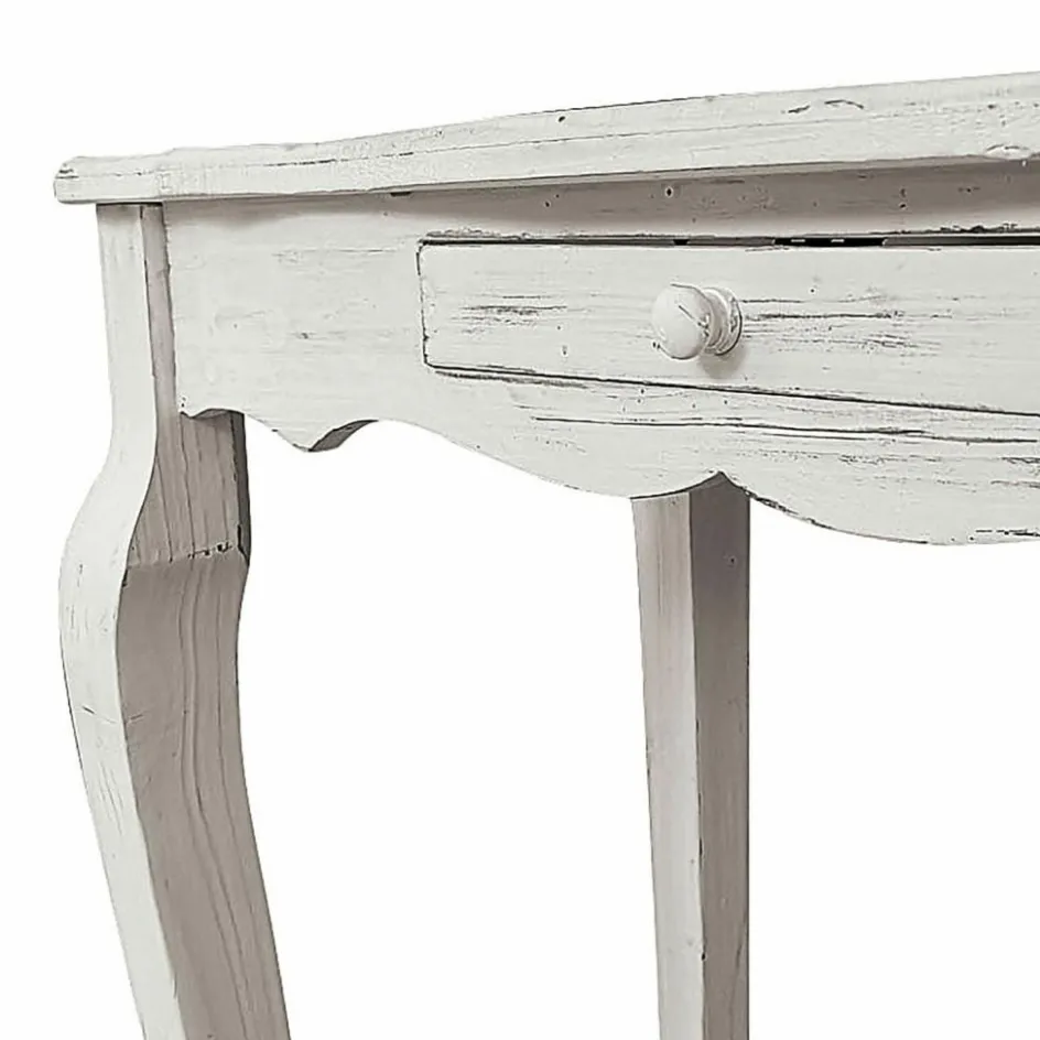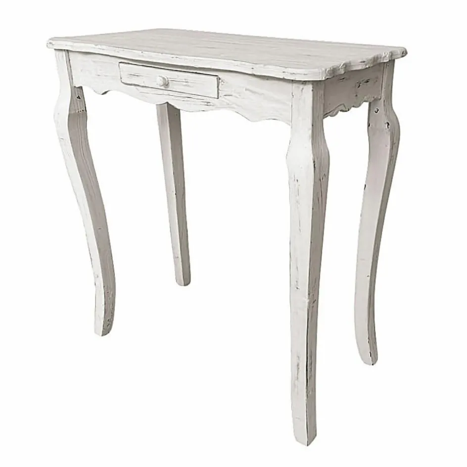 Die zauberhafte Landhaus-Konsole im französischen Stil wurde aus massivem Tannenholz gefertigt. Eine Lasur im Antik-Look unterstreicht den dekorativen Vintage-Charme. Eine schmale Schublade nimmt allerlei Kleinkram auf. Dank der relativ geringen Tiefe macht der Konsolentisch auch in einem schmalen Flur und als Ablage sowie Aufbewahrung für Schlüsselbunde, Hüte und Taschen eine tolle Figur. Darüber ein Spiegel – fertig ist ein elegantes Entree mit Stil.