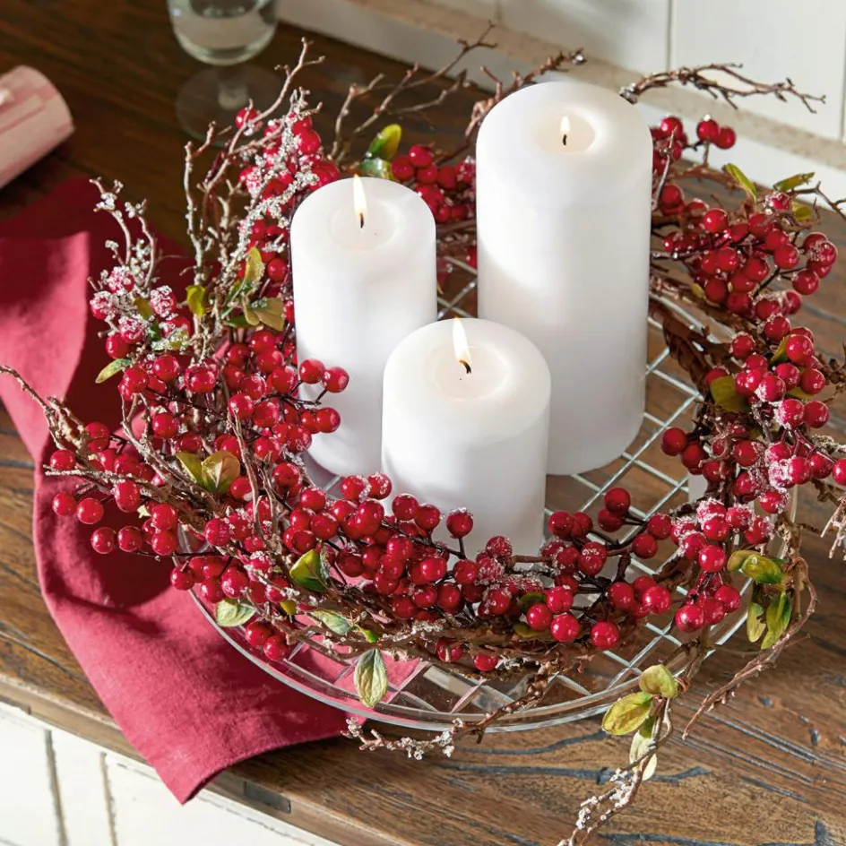 Der schöne Vogelbeeren-Kranz ist sehr naturgetreu nachgebildet und sieht ganz echt aus. Viele Beeren sind detailverliebt arrangiert, sodass er wie frisch gebunden erscheint. Der recht große Kranz bleibt für immer frisch, sodass Sie sich viele Jahre daran erfreuen können. Vor allem im Herbst und Winter ist er ein stimmungsvolles Accessoire, vielleicht ja an einem dekorativen Band an der Tür aufgehängt. So wirkt Ihr Heim gleich einladend. Oder schmücken Sie die Wand, eine Konsole oder den Tisch mit diesem hübschen Stück. Es ist zu jedem Interieur ein Gewinn, und besonders zum gemütlichen Landhaus-Stil mit hellem Holz versprüht das hübsche Stück seinen Charme. Mit diesem farbenfrohen Kranz entsteht ein stimmiges Bild, das Ihr Zuhause noch gemütlicher macht.