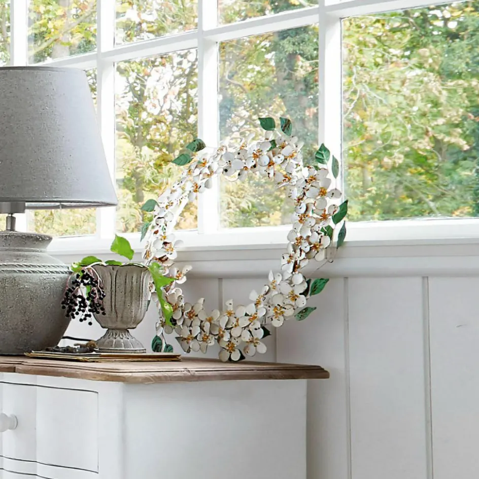 Kränze eignen sich ideal zum Dekorieren. Dieses Modell repräsentiert dazu noch höchste Handwerkskunst. Denn die filigranen Blüten sind aufwendig aus Eisen geschmiedet und wirken so authentisch, wie ihre Vorbilder aus der Natur. Auch die zarten Blätter zeigen sich aus der Nähe betrachtet eindrucksvoll naturgetreu. Und damit das Bild noch reizvoller wirkt, werden Blüten und Blätter liebevoll mit einem Antik-Finish veredelt. Ein stimmungsvoller Blumenzauber, der nie verblüht und viele Jahre aufs Neue erfreut. An ihrer Haustür sorgt der Kranz für einen frühlingshaften Willkommensgruß, auf Ihrer festlichen Ostertafel wird er in Kombination mit Kerzen zum optischen Highlight.