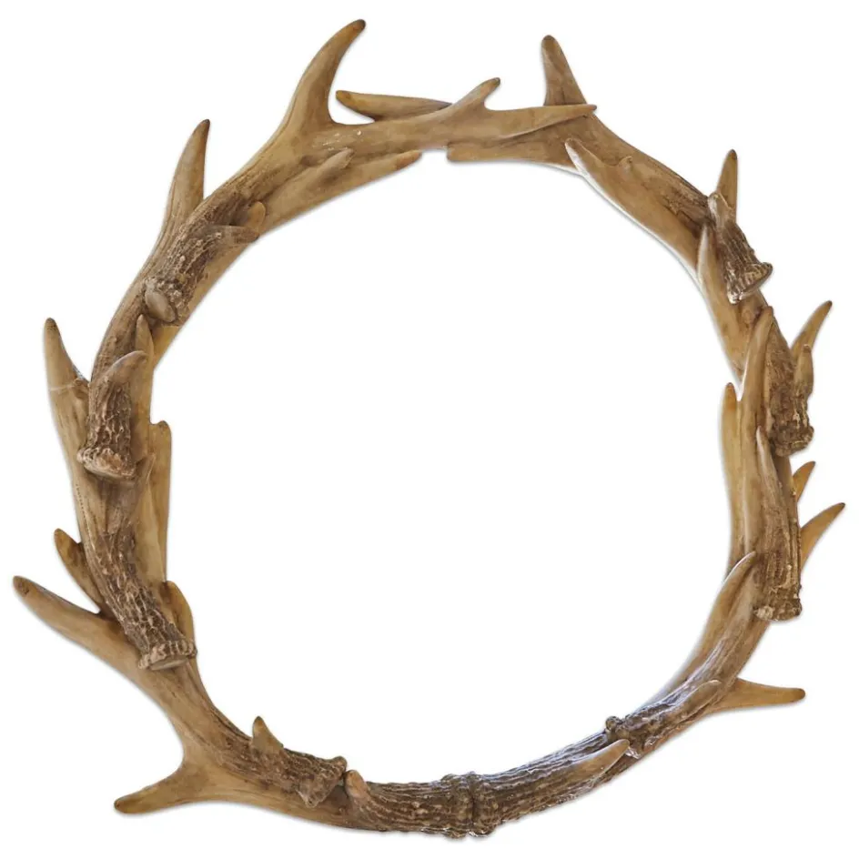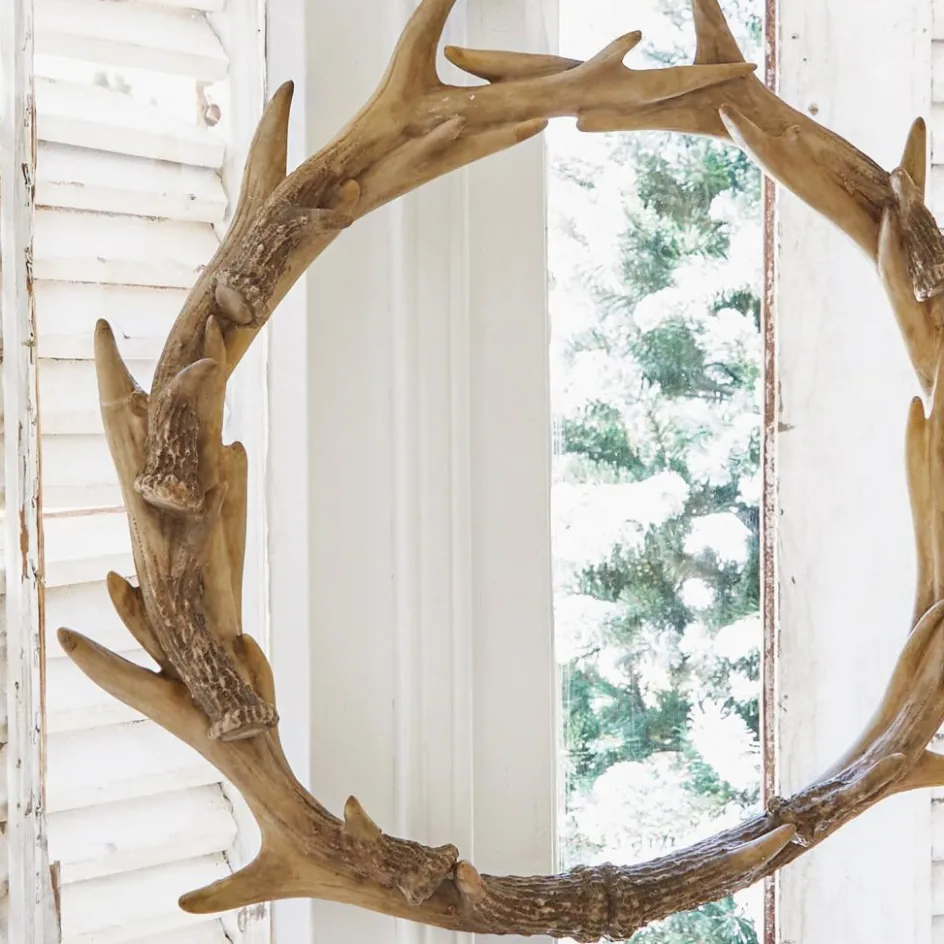 Der handbemalte, recht große Kranz sieht aus wie aus echten Geweihen gefertigt. Doch sie sind ganz tierfreundlich und bestehen aus Polyresin, das aufwendig von Hand bemalt wurde. So entsteht der authentische Charakter des rustikalen Accessoires. Der reizvolle Kranz lässt sich legen oder auch an einem hübschen Band aufhängen. Holen Sie sich hiermit das Gefühl einer heimeligen Berghütte nach Hause und setzen Sie zum Landhaus-Stil wie auch zu anderen Wohnstilen einen geschmackvollen Akzent. Jede Saison wieder eine Freude.