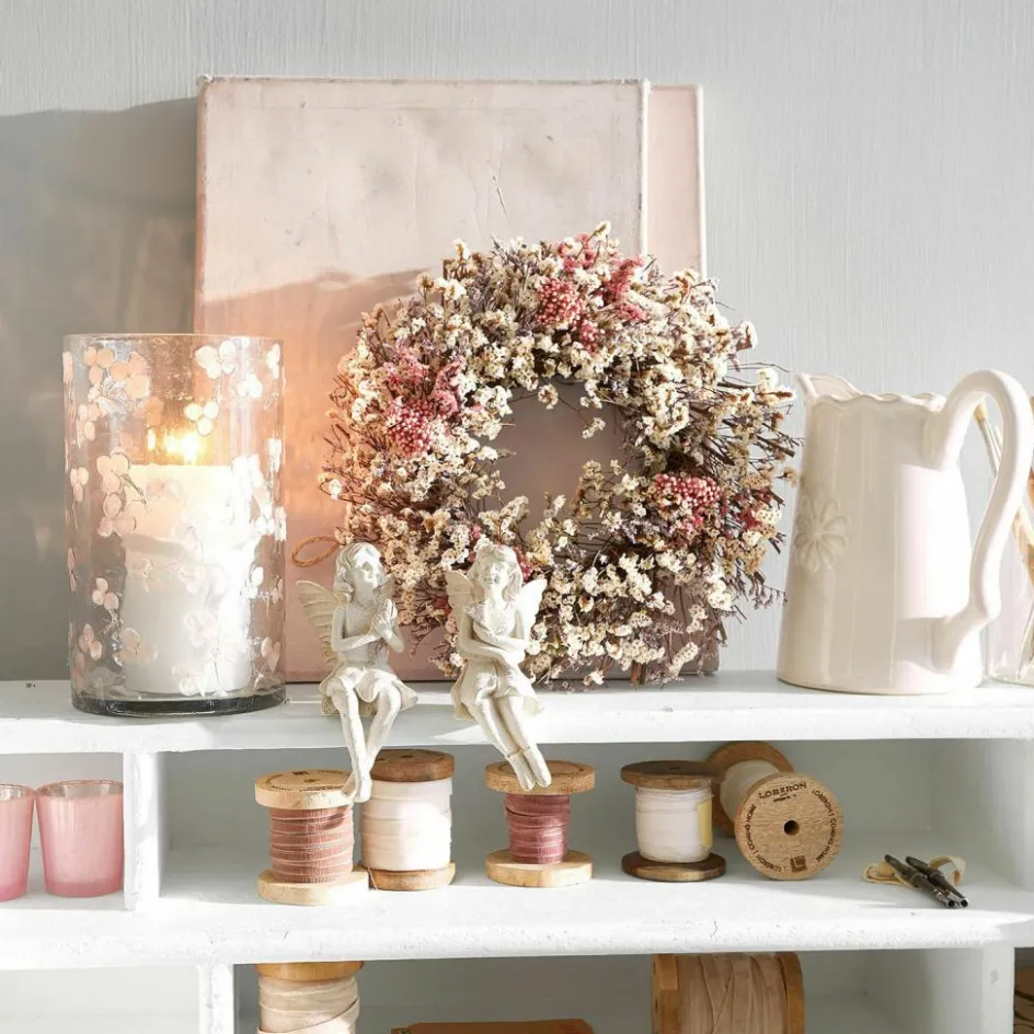 Der bezaubernde Kranz aus Rattan und Trockenblumen ist ein Meisterwerk der floralen Handwerkskunst. Jeder einzelne Zweig des Rattans ist sorgfältig geflochten, um eine stabile Basis zu schaffen, die durch die filigranen Trockenblumenarrangements in sanften Rosa- und Weißnuancen zum Leben erweckt wird. Diese Kombination aus Naturmaterialien verleiht dem Kranz eine zeitlose Ästhetik, die sich nahtlos in verschiedenste Einrichtungsstile einfügt. Ob als Türschmuck, Wanddekoration oder als zentraler Punkt auf Ihrem Esstisch, dieser Kranz bringt eine harmonische Verbindung von Natur und Design in Ihr Zuhause.