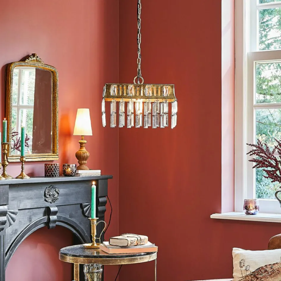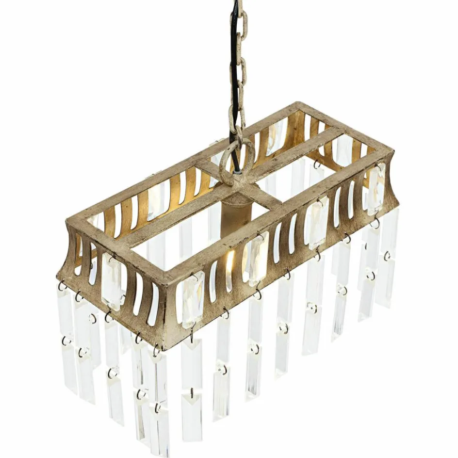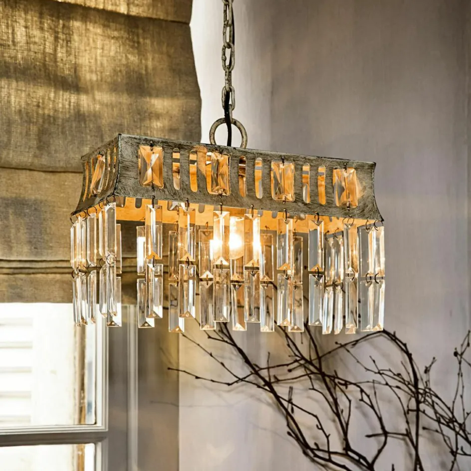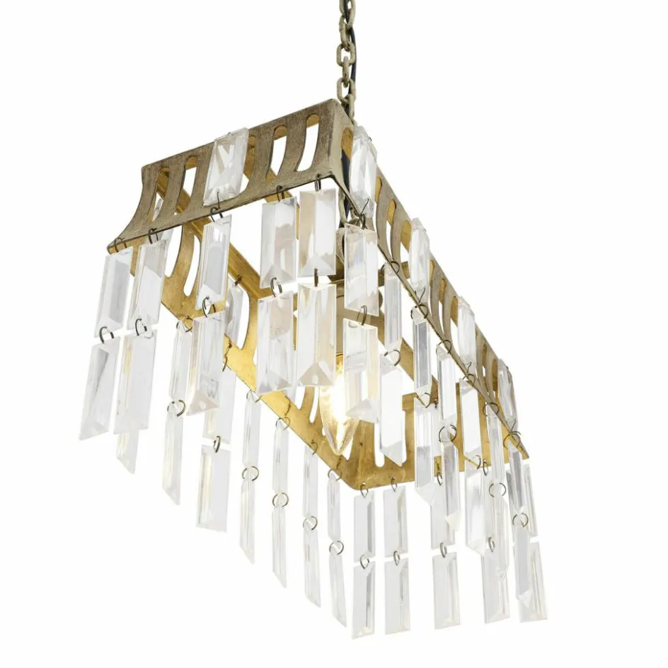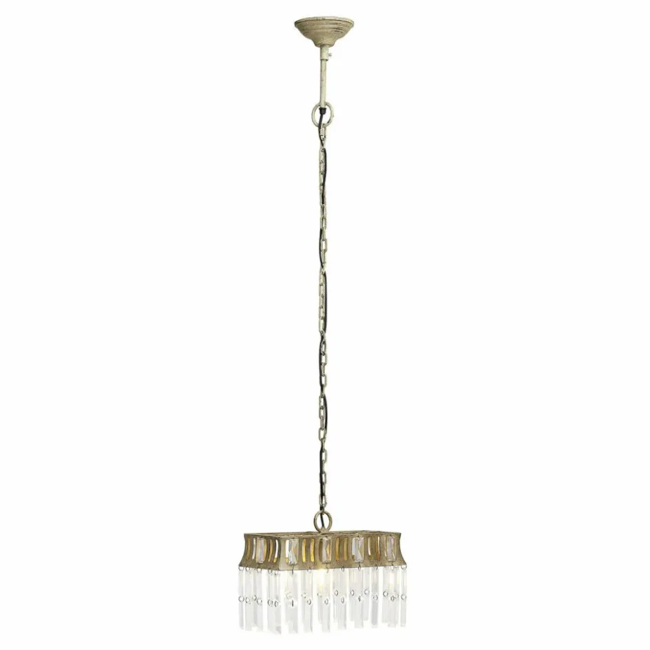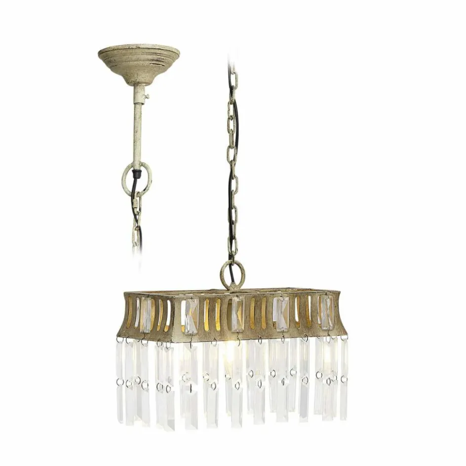 Diese wundervolle Hängelampe hat das Zeug zu großer Eleganz. Sie ist hochwertig in Material und Verarbeitung und glänzt stilistisch mit den Reizen der vergangenen Zeiten. Ihren besonderen Glamour erhält sie durch aneinander gereihte, aufwendig geschliffene Glasprismen, die durch Lichteinfall faszinierende Lichtreflexe zaubern. Eine ästhetische Pracht, die von einem Eisengestell mit ausgesparten Zierornamenten und antikem Finish gehalten wird. Entdecken Sie auch für Ihr Zuhause dieses stilvolle Schmuckstück, das eine zeitlose Anziehungskraft besitzt und in nahezu allen Interieurwelten gefällt – von Vintage über klassisch bis modern. Über dem Esstisch, im Flur oder Schlafzimmer wird die Lampe sofort zu einem Blickfang. Ein Leuchtmittel ist im Lieferumfang nicht enthalten, damit bleibt die Auswahl der individuellen Glühbirne bewusst Ihnen überlassen.