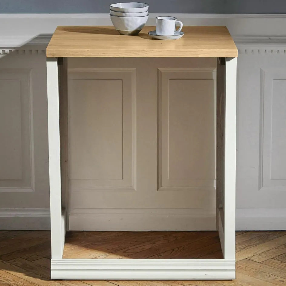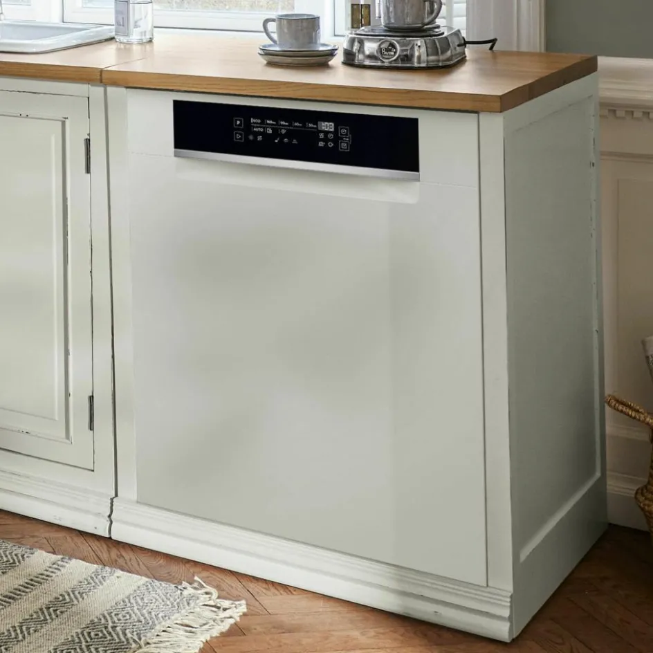 Es gibt unzählige Menschen, die eine Passion fürs Kochen haben. Die mit Leidenschaft neue Rezepte ausprobieren, auch vor aufwendigen Kreationen nicht zurückschrecken, sondern mit Freude an Kreativität und Genuss bei der Sache sind. Wenn man aber jemanden sucht, der nach dem Kochen noch Lust auf den Abwasch hat, wird sich kaum jemand freiwillig melden. Und das muss ja glücklicherweise nicht mehr sein, denn inzwischen gibt es moderne Spülmaschinen, die diese Arbeit besser und ressourcenschonender erledigen, als wir es per Hand könnten. Und weil auch die Freunde des traditionellen Landhaus-Looks auf diese Errungenschaft der Moderne nicht verzichten wollen, gibt es diesen Spülmaschinenumbau. Mit seinem Kranzprofil am Sockel und der naturfarbenen Ulmenholzplatte passt er perfekt zu den anderen Modulen (20663, 20666, 20667, 20669) dieser Küchenserie, der Spülmaschinenumbau ist aber zugleich für unterbaufähige Geschirrspüler geeignet. Das heißt, er hat keine Rückwand, damit dem Anschluss von Wasser und Strom nichts im Wege steht.