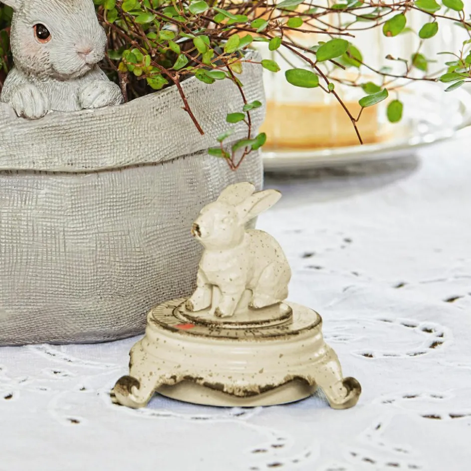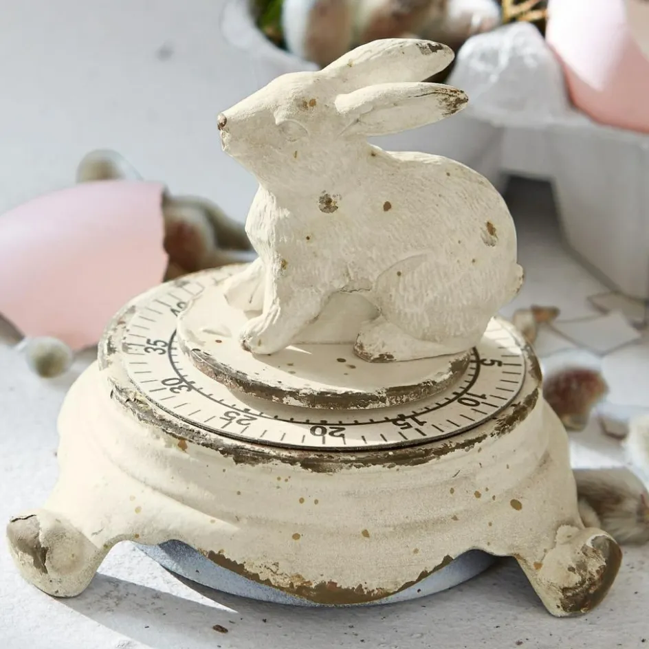 Ein nostalgisches Accessoire für die Küche ist diese zauberhafte Uhr in Form eines kleinen Häsleins. Das Kochen von Frühstücks- oder Ostereiern wird mit diesem nostalgischen Helferlein zur wahren Freude. Der liebevoll gestaltete Hase aus Zink wirkt durch die detailgenaue Verarbeitung, als wäre er gerade in die Küche gehoppelt. Das wunderschöne Finish im Antik-Stil verleiht ihm einen besonders romantischen Touch. In einer Küche im Stil des beliebten Shabby-Chic wirkt das Häslein besonders lieblich. Doch auch zum Landhaus-Stil oder zu Interior im Country-Chic passt die kleine Küchen-Uhr ganz wunderbar. Wenn die Eieruhr nicht im Gebrauch ist, schmückt sie das Küchenregal mit ihrer dekorativen Optik. Ein wundervolles und gleichzeitig nützliches Accessoire, das nicht nur zur Osterzeit verzückt.