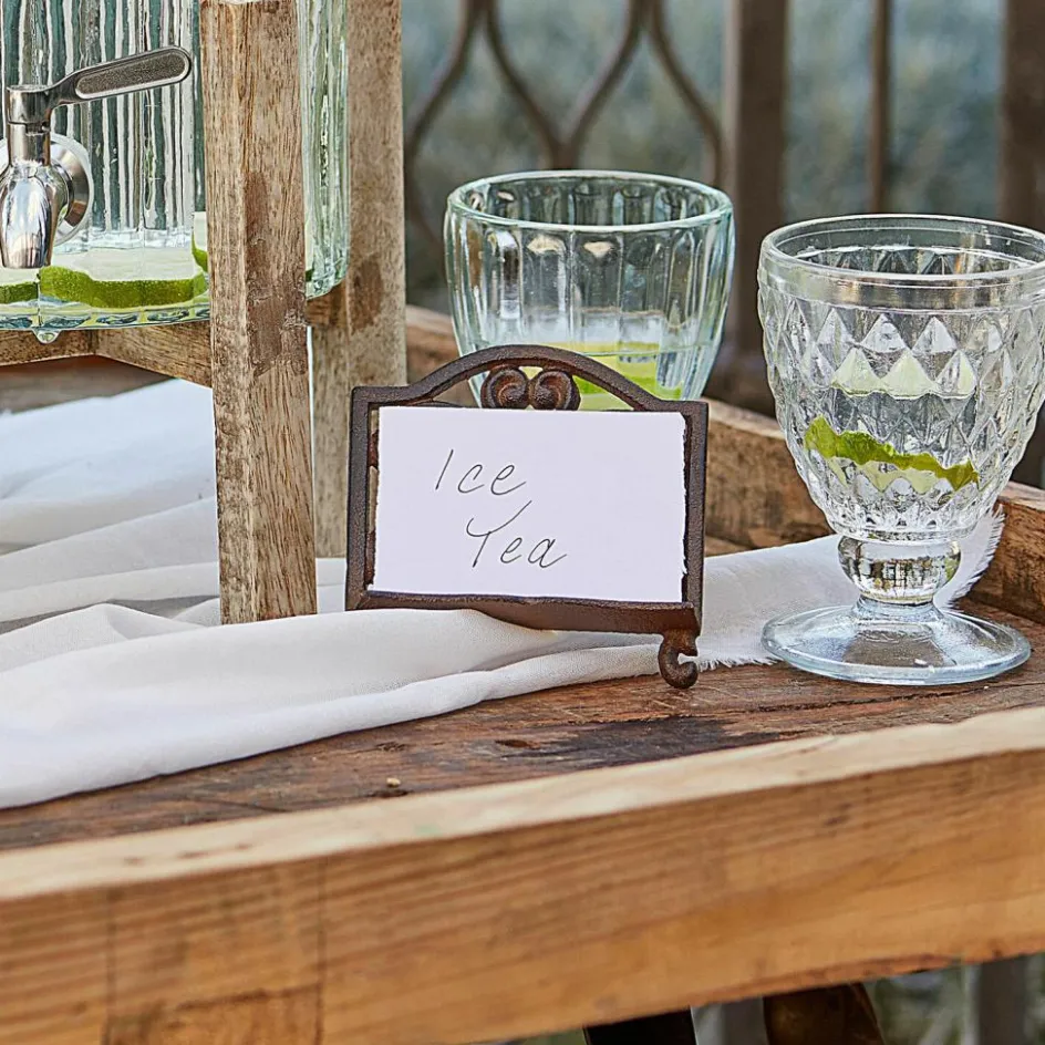 Schaffen Sie mit diesem 6er Set an Kartenhaltern aus Gusseisen ein Ambiente voller Eleganz und Raffinesse. Das robuste Gusseisen bietet Stabilität und ist dennoch mit einer sorgfältigen Detailarbeit verziert, die jedes Stück zu einem kleinen Kunstobjekt erhebt. Ob als Halter für wichtige Ankündigungen bei Veranstaltungen, als stilvolle Basis für Ihre Visitenkarten oder als Teil einer kreativen Tischdekoration – diese Kartenhalter sind nicht nur praktisch, sondern auch ein dekoratives Statement, das Stil und Klasse vermittelt. Sie sind ein Zeugnis dafür, dass auch kleine Accessoires einen großen Einfluss auf die Gesamtwirkung eines Raumes haben können.
